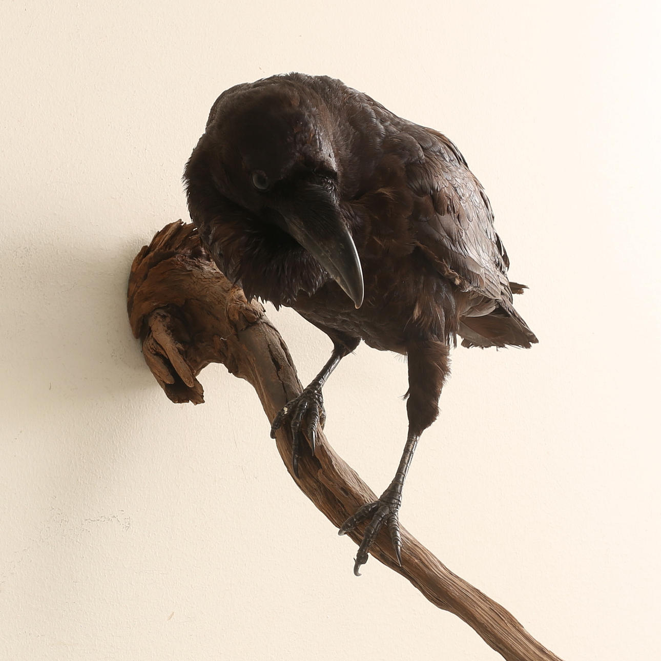 2026136. TAXIDERMI, ausgestopfter Rabe.