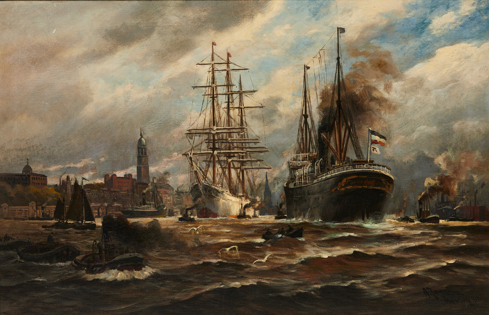 2027822. ALFRED JENSEN. Gemälde, Hamburger Hafen, 1916.