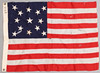 Flagge der Vereinigten Staaten, wahrscheinlich eine spätere Produktion des ersten Stars and Stripes-Designs, aus der Zeit von 1777 - 1795. Hauptsächlich in Wolle.