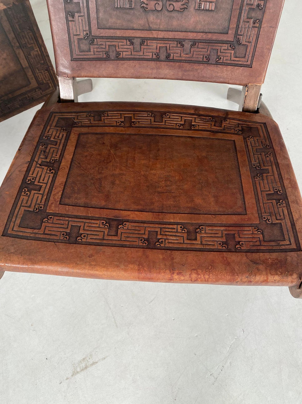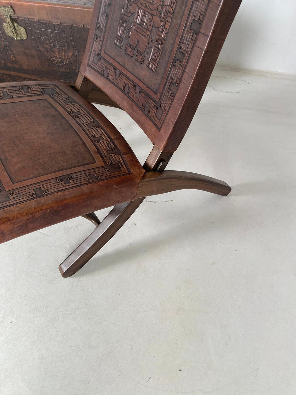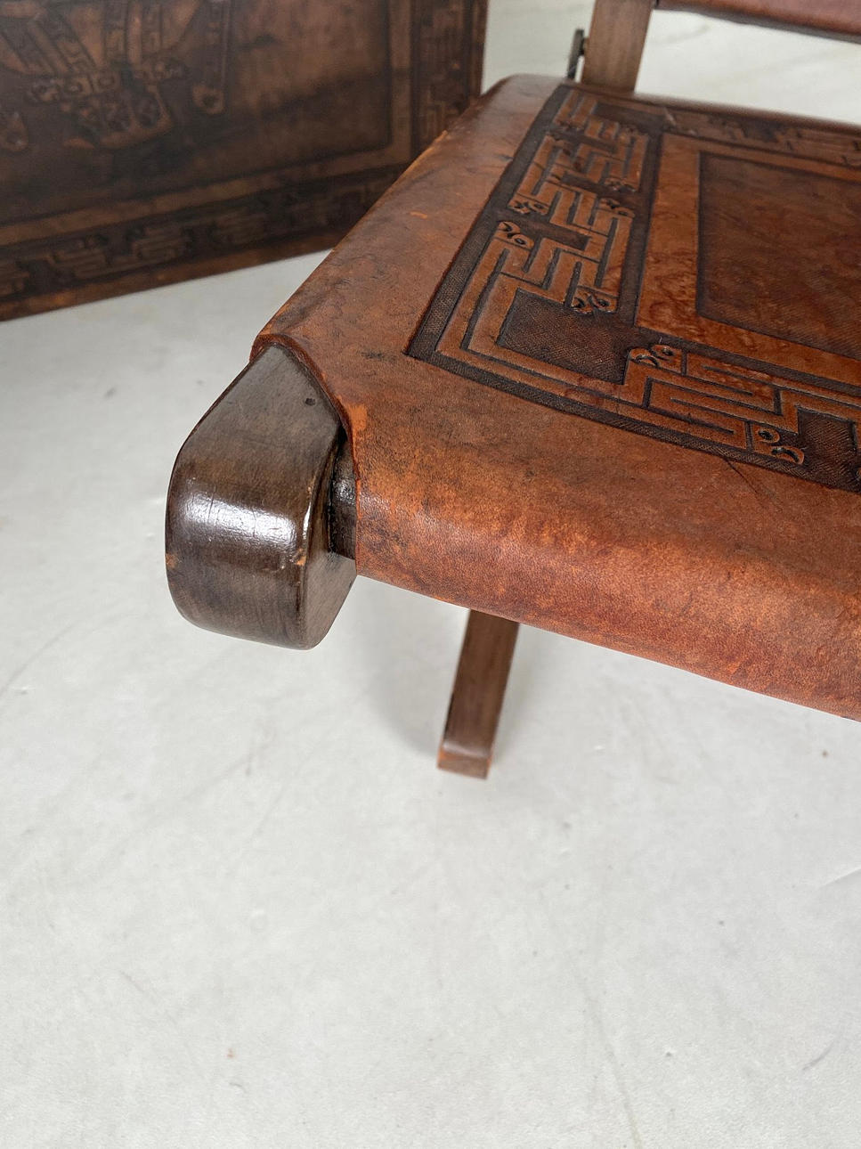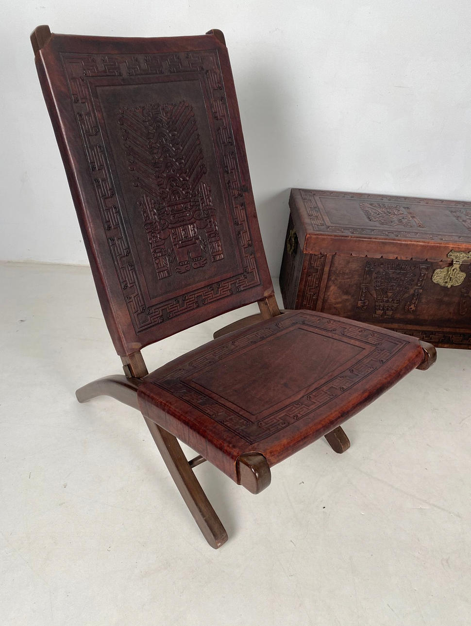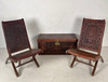 Paar Klappsessel und Truhe, Thailand, Holz. Leder.