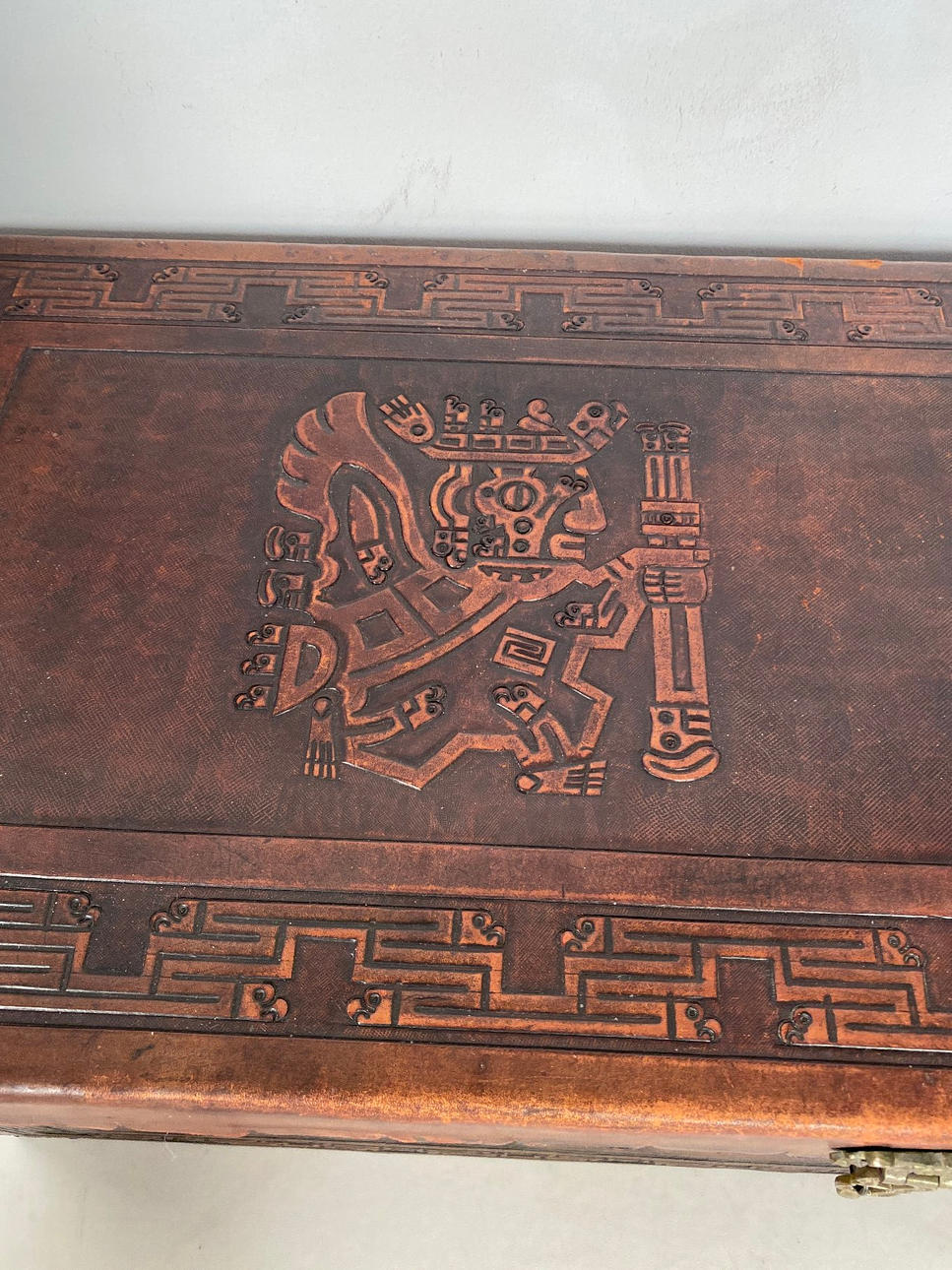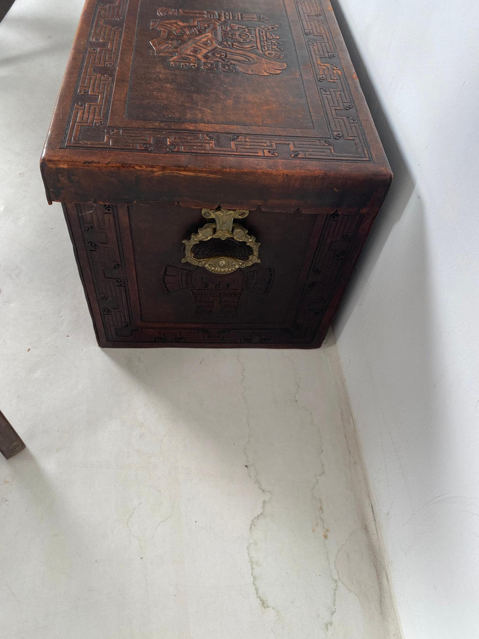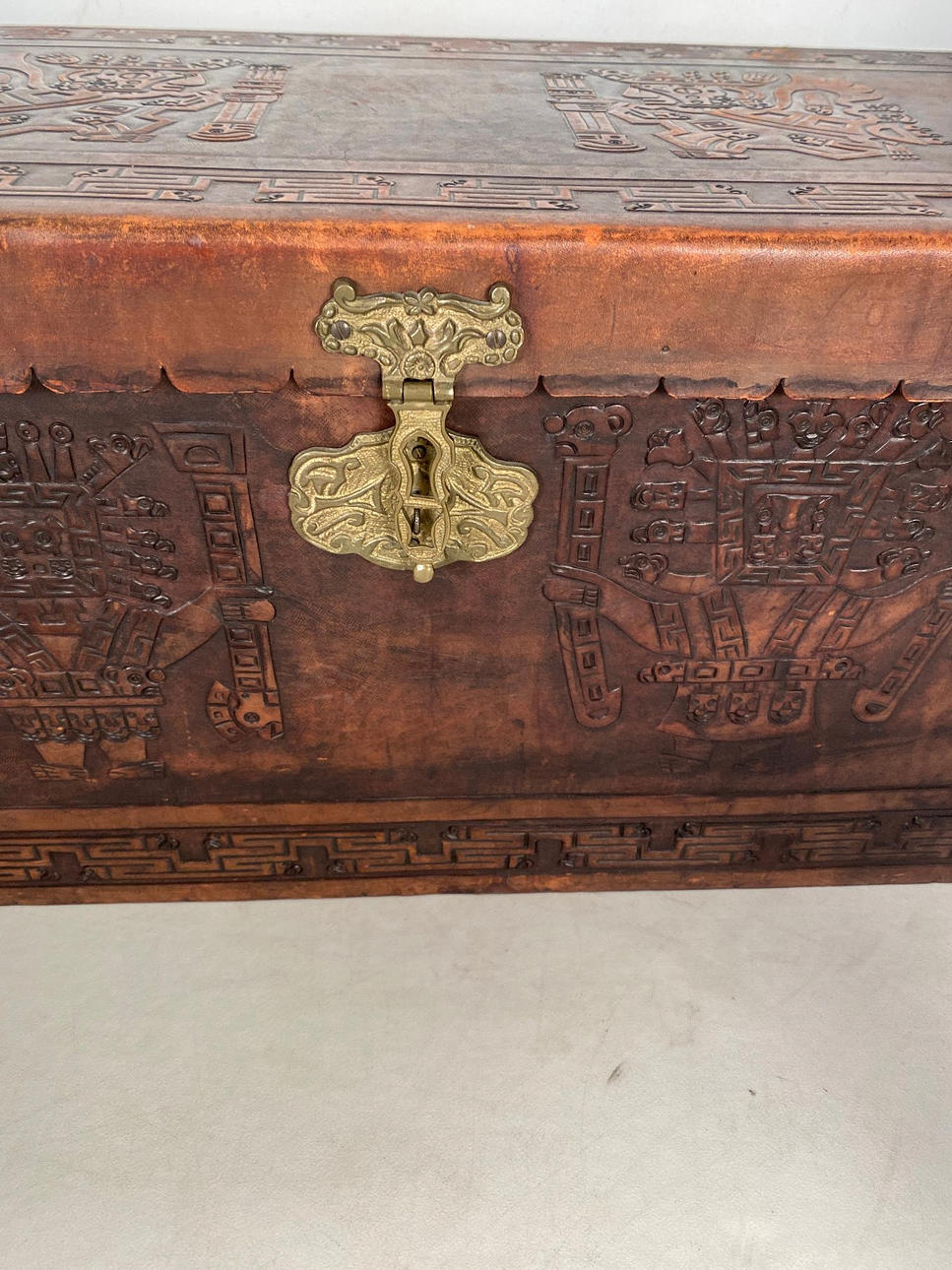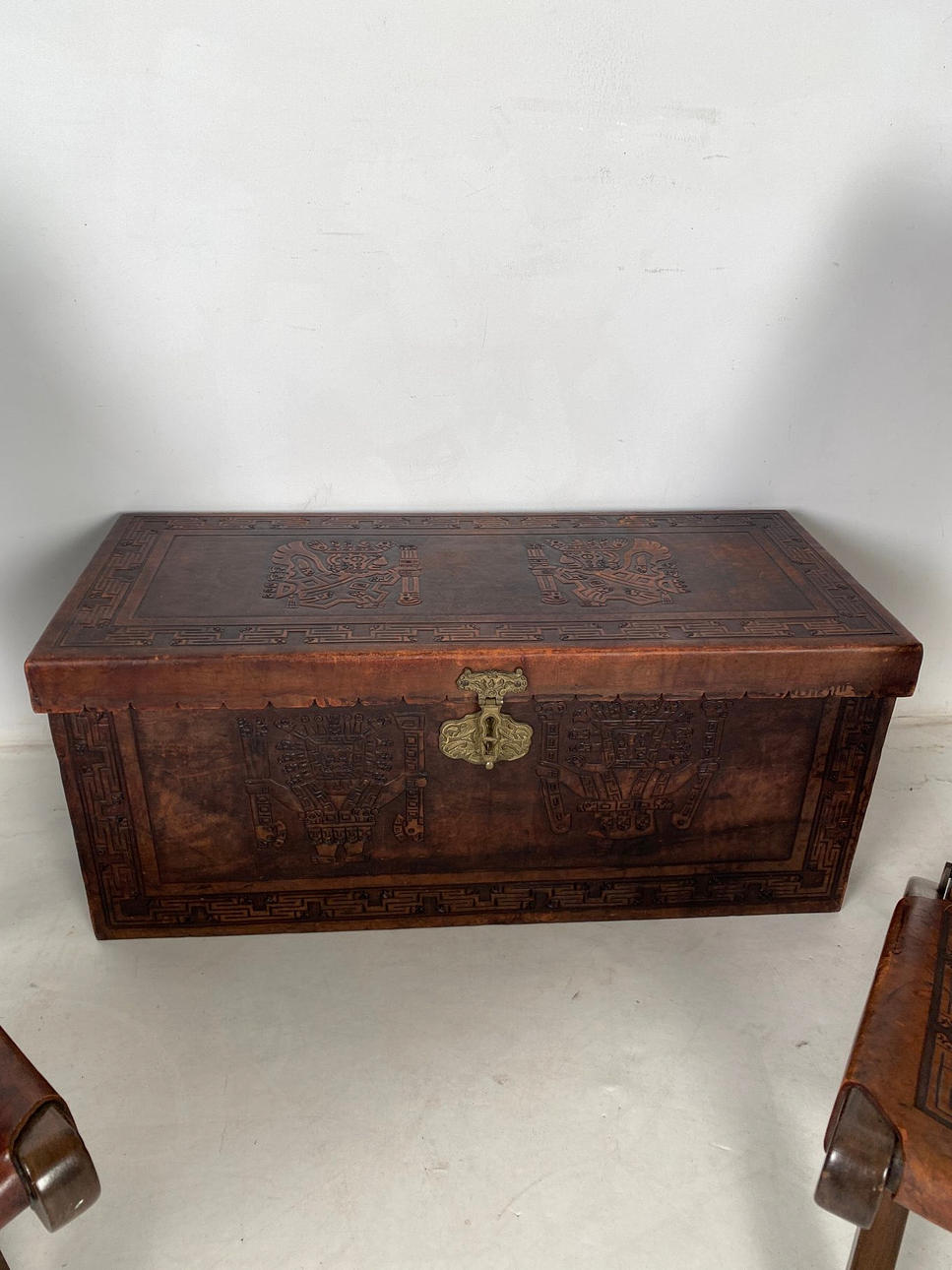 Maße Truhe: H. 43 cm. B. 101 cm. T: 44 cm.
