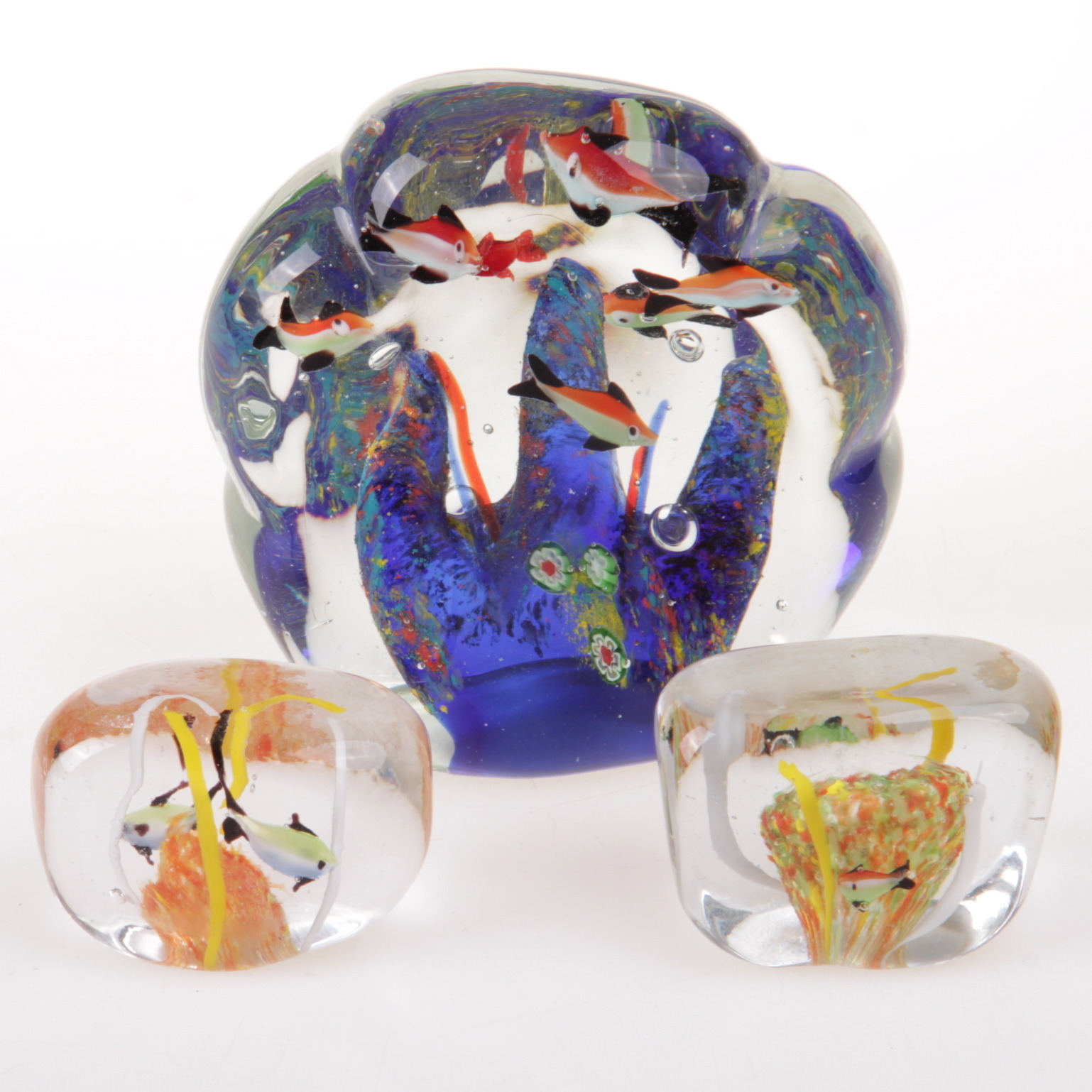 204088. GLASOBJEKT, 3-tlg. Aquarium, Murano, Italien.