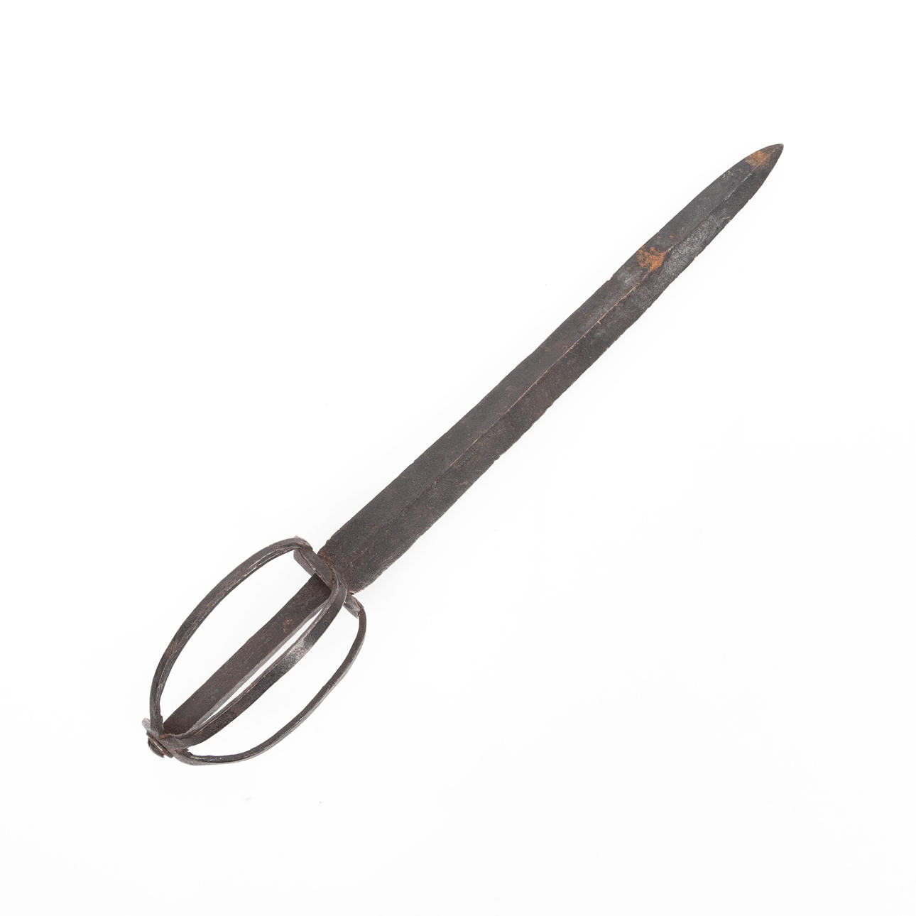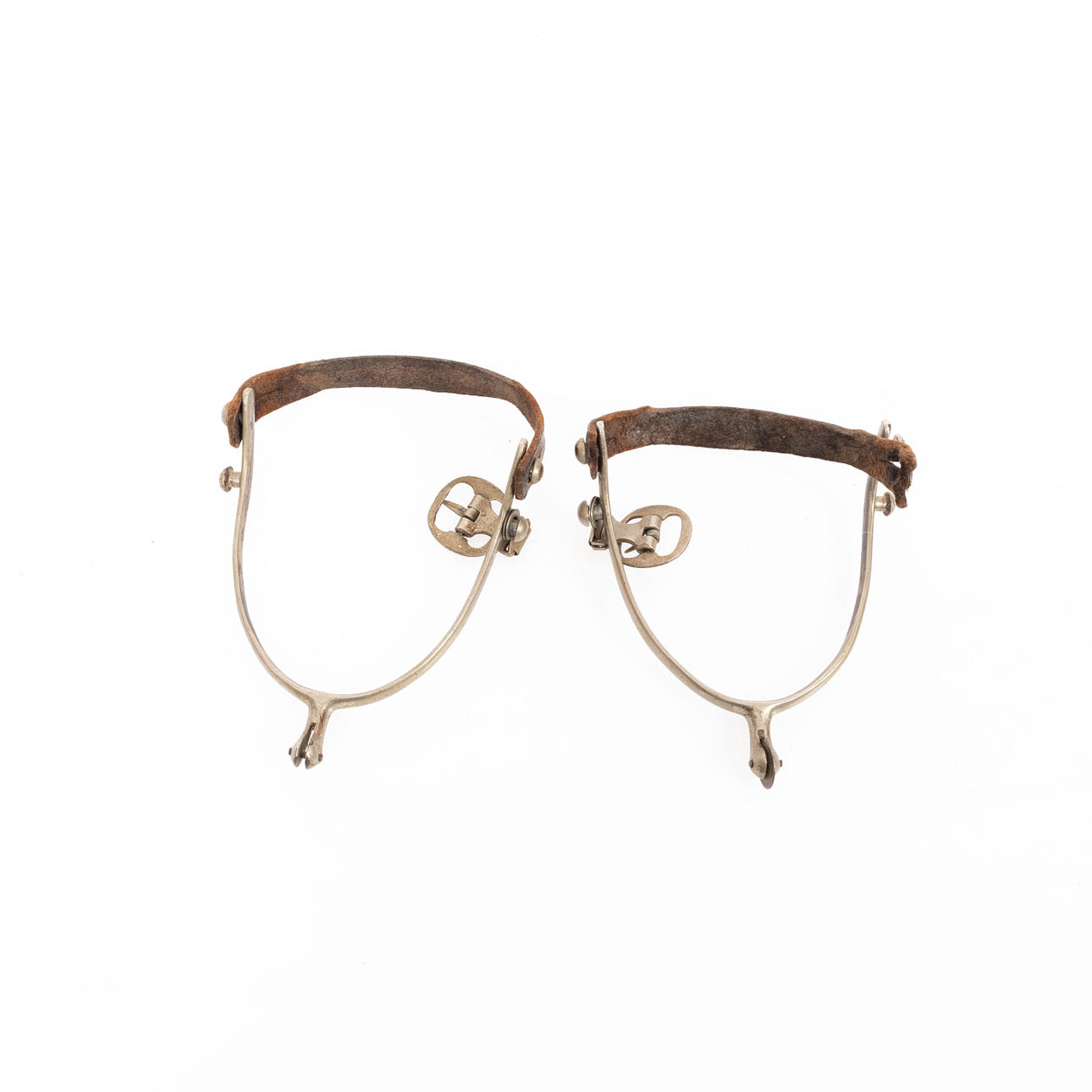 Der Cutter ist aus Schmiedeeisen, Länge 56 cm. Aufkleber mit Metallwanne Lederaufhängung, Länge 33 cm. Neben ein paar Sporen.