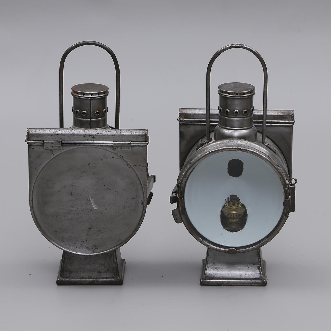 2045242. ZUGLICHT, 2 Stück, Glas/Metall, 1900er.