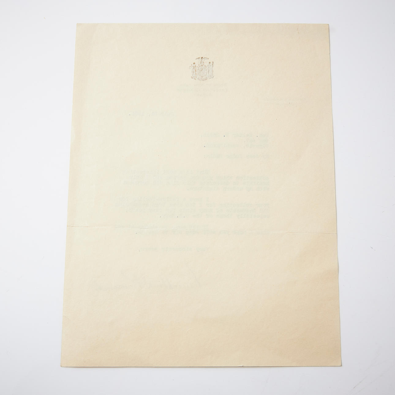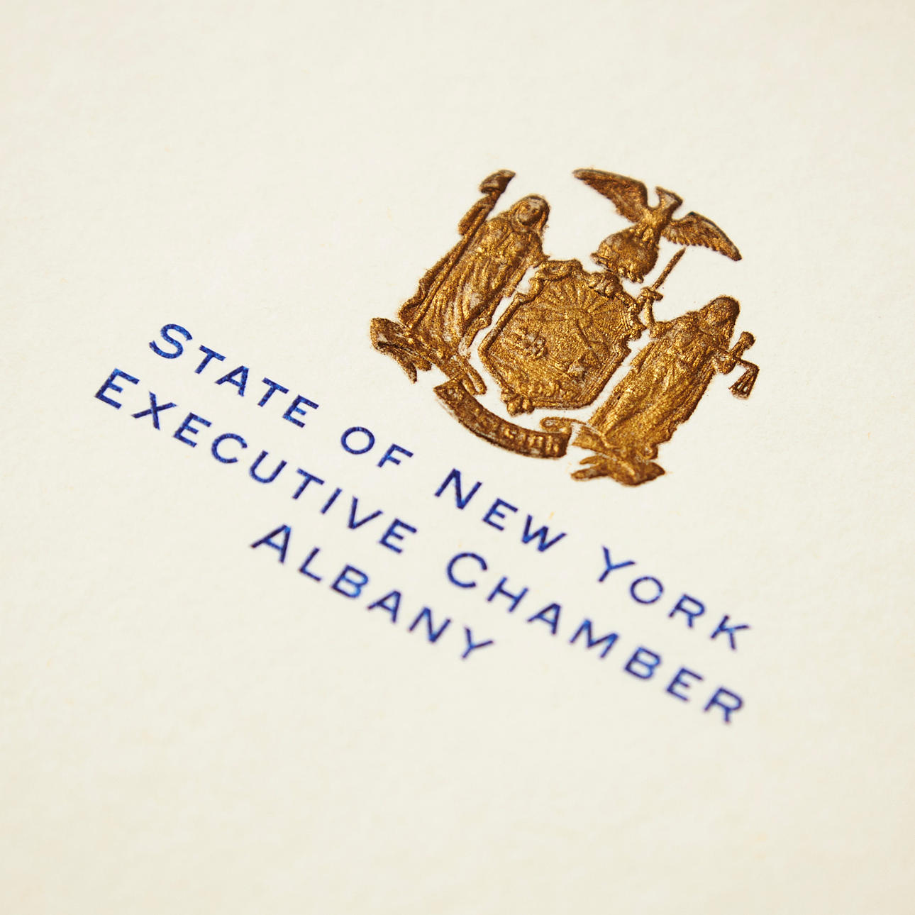 Maschinengeschriebener Brief mit Unterschrift in Tinte auf Briefpapier der Exekutivkammer des Bundesstaates New York, Albany. (1) S. 267 x 203 mm. Schwache Falten.