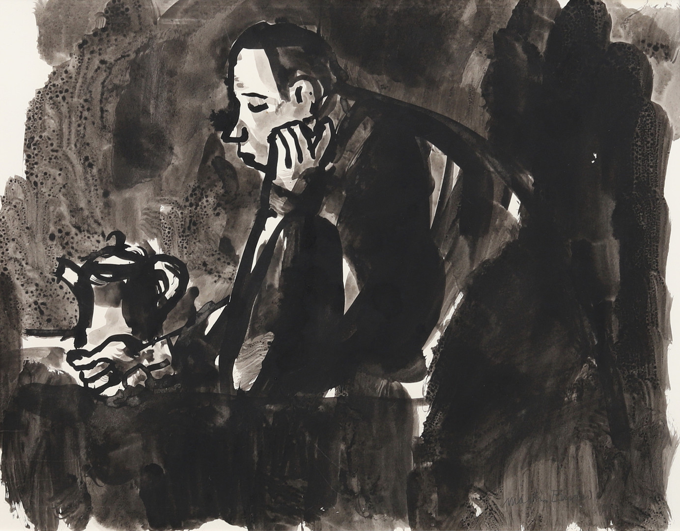 2054522. MARTIN EMOND. "Am Kaffee", Aquarell, signiert.