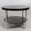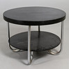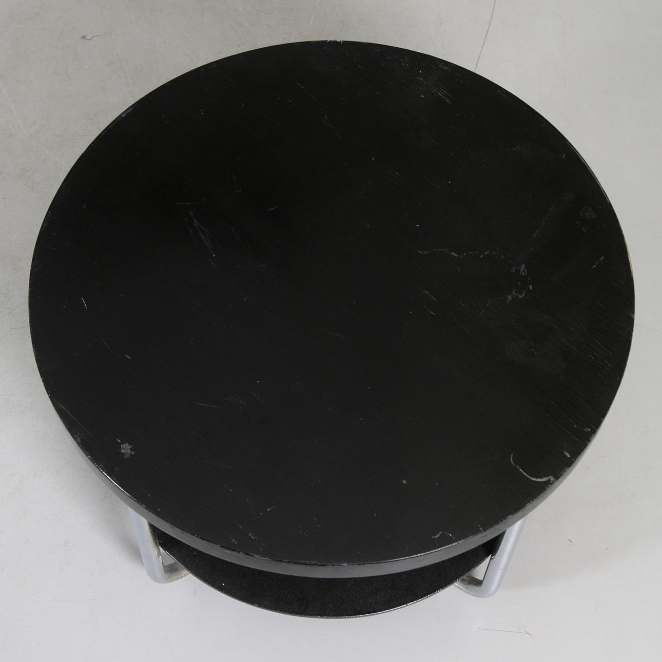 Schwarz lackierte Scheiben mit verchromten Beinen, Durchmesser ca. 68, Höhe 51 cm.