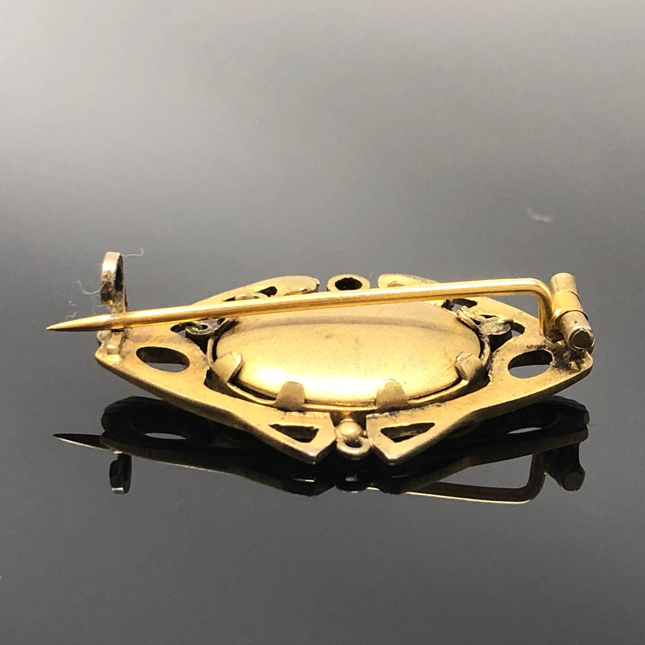 Antike Jugendstil Brosche aus den 1910 Jahren gefertigt aus vergoldetem Metall.