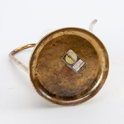 Gebrauchter Zustand, oberflächlicher Riss im Metall (Kratzer/Riss) ca. 10 mm im oberen Teil, aber nichts was die Funktion der Kanne beeinträchtigt.