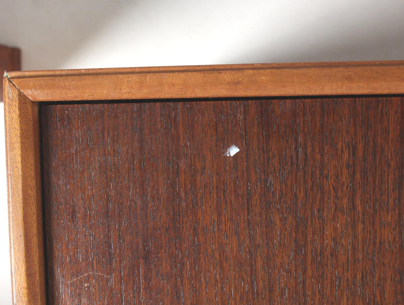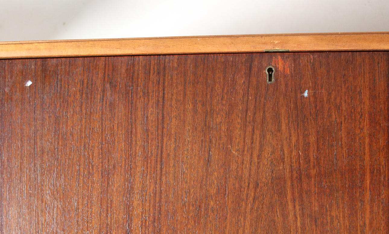 altersgemäße Gebrauchsspuren, Kratzer, Furnierbeschädigungen. eine Tür fehlt.