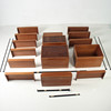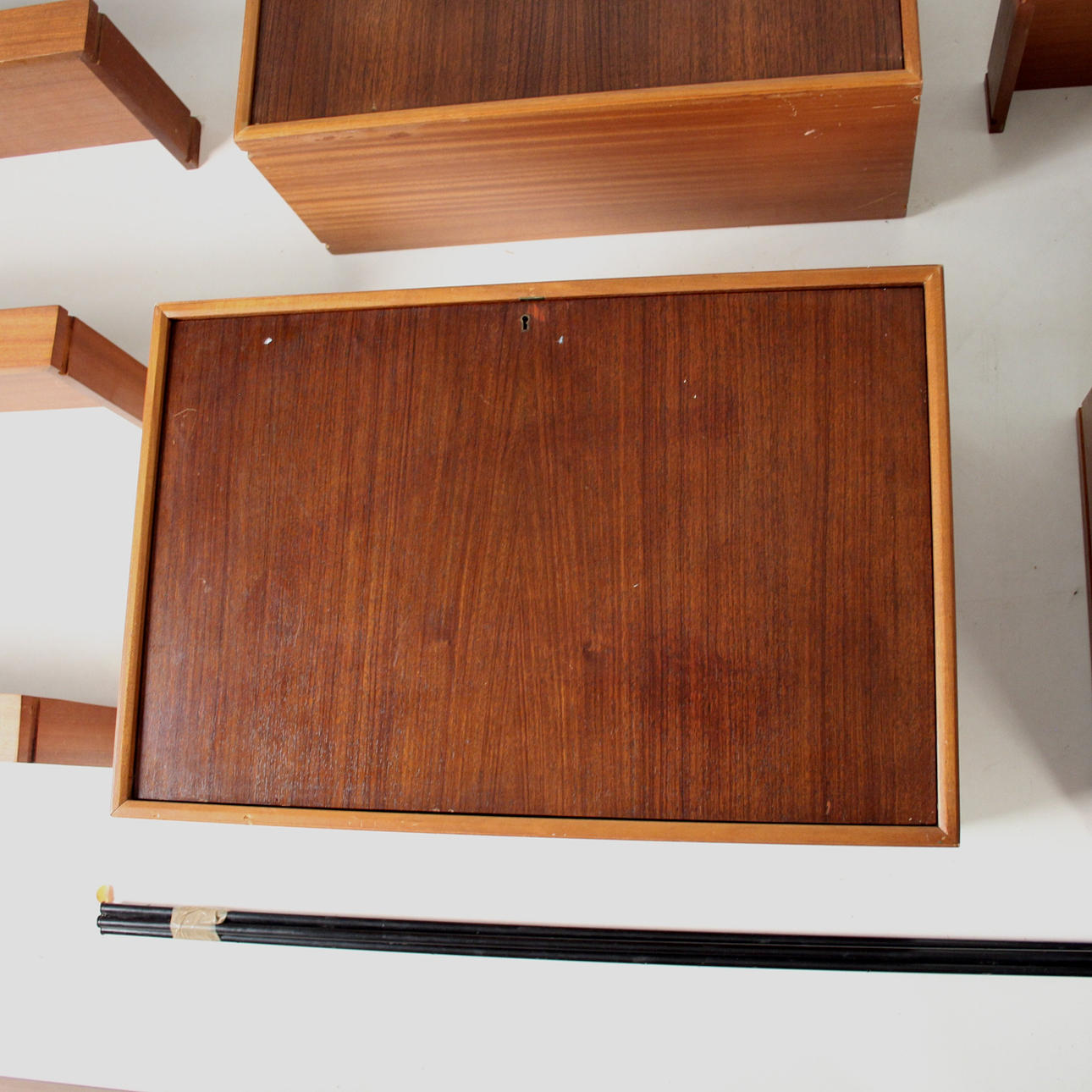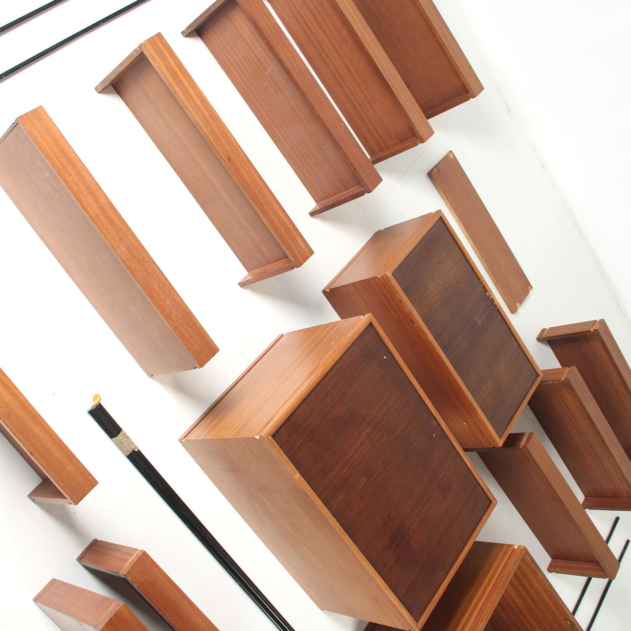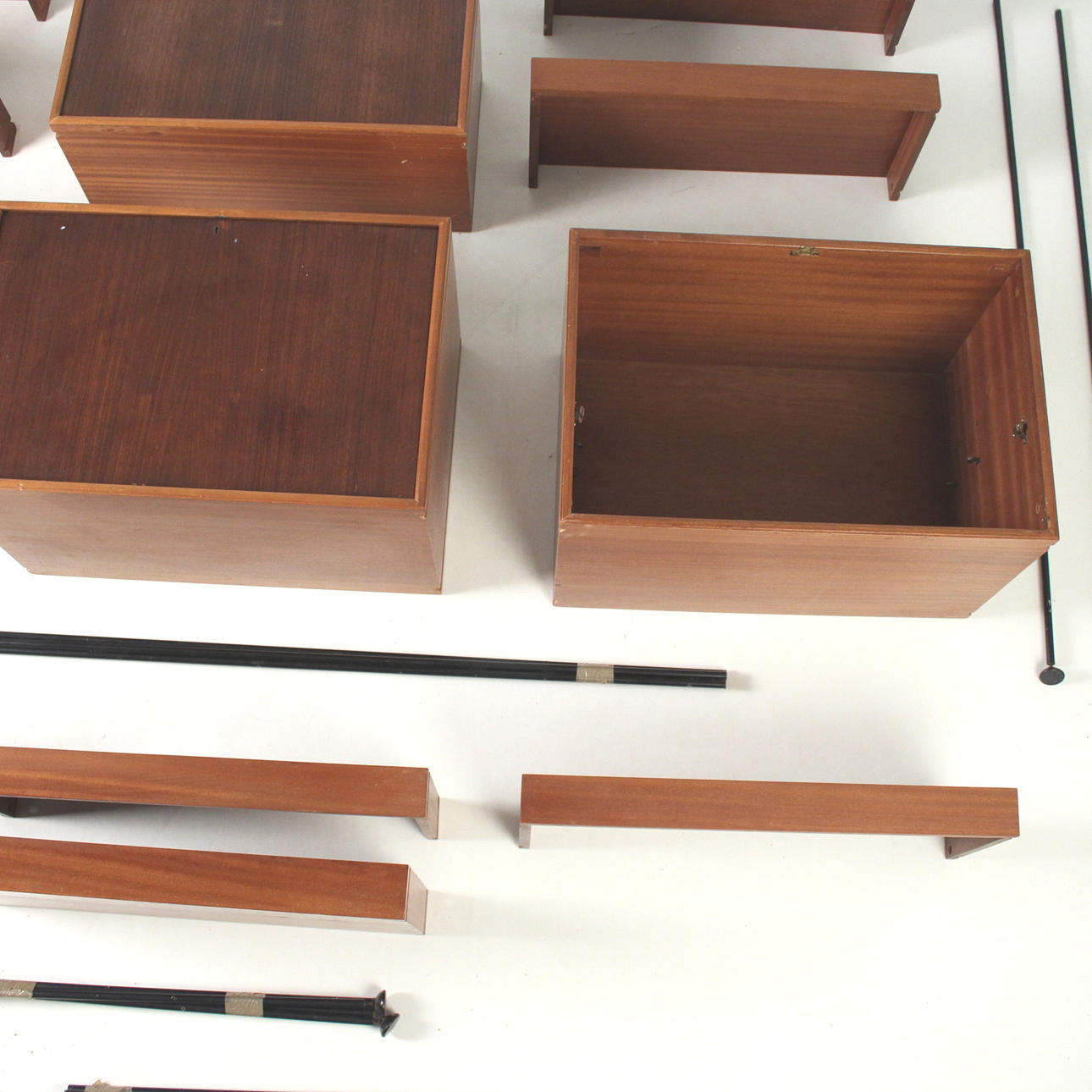 Konvolut Spannregal, Teak, Metall schwarz, Messing