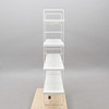 Weiß lackierter Metallrahmen und weiß laminierte Regale. Länge 170, Tiefe 33, Höhe 159 cm.