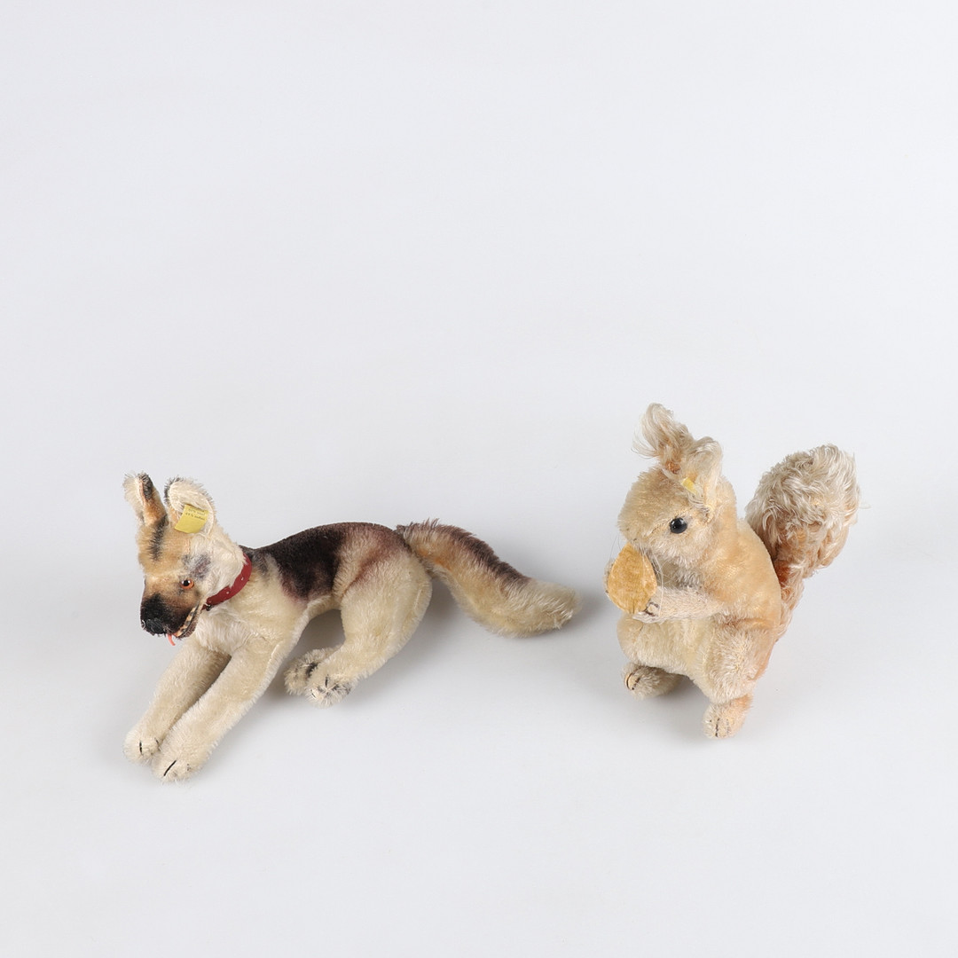 2062202. STEIFF, Eichhörnchen und Deutscher Schäferhund.