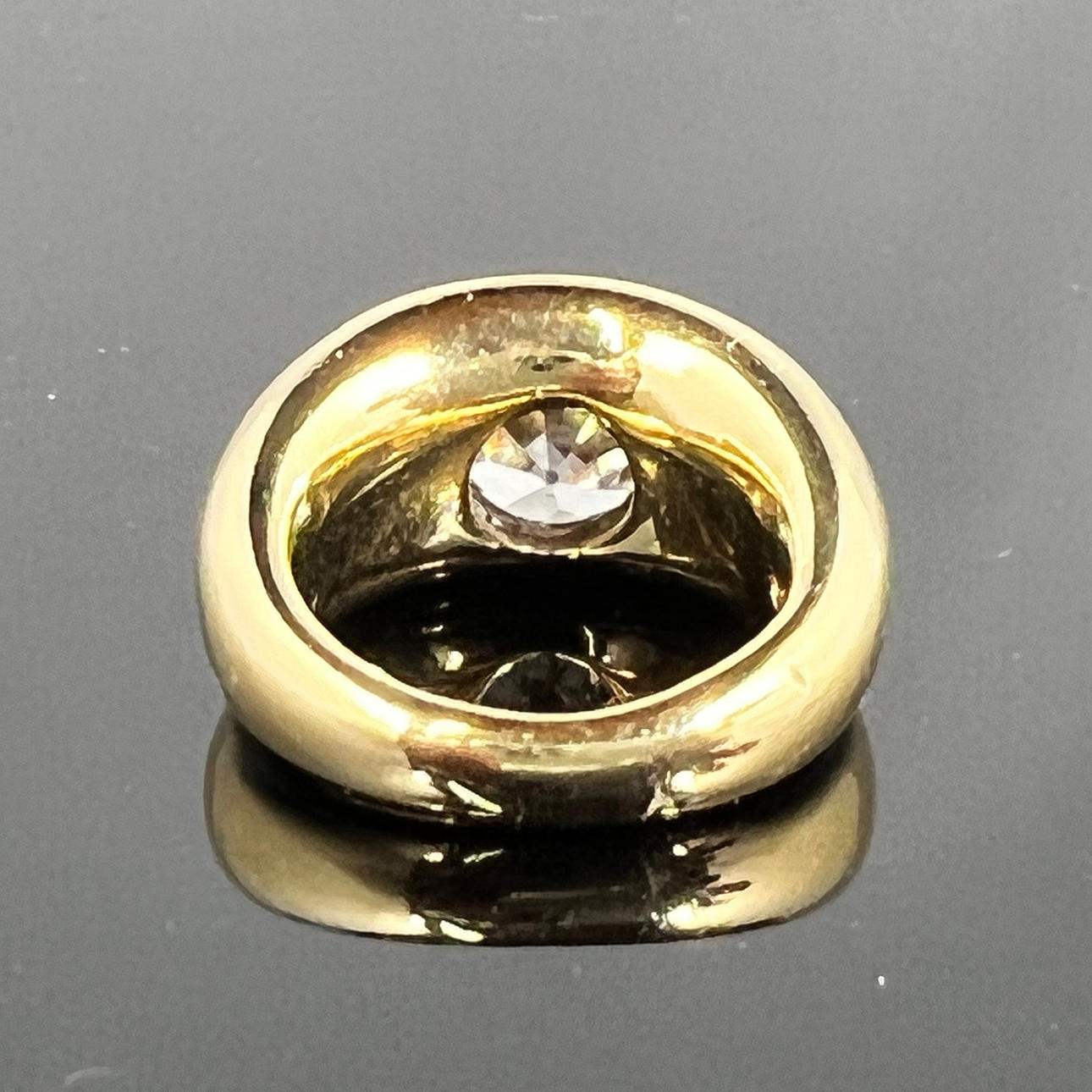 Steinbesatz: Diamant im Altschliff ca. 2,5 ct, Farbe: Wesselton (H), wenige kleine dunkle Einschlüsse unter der Tafel (P1).
