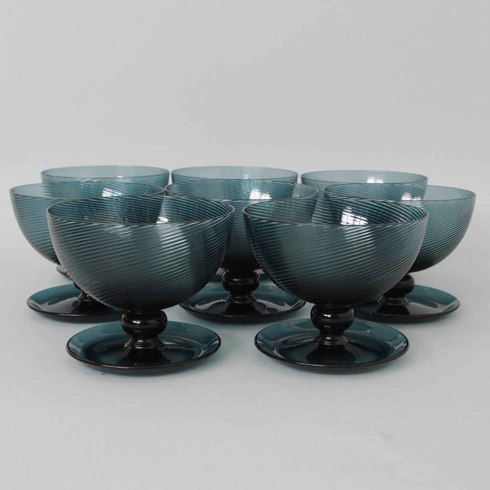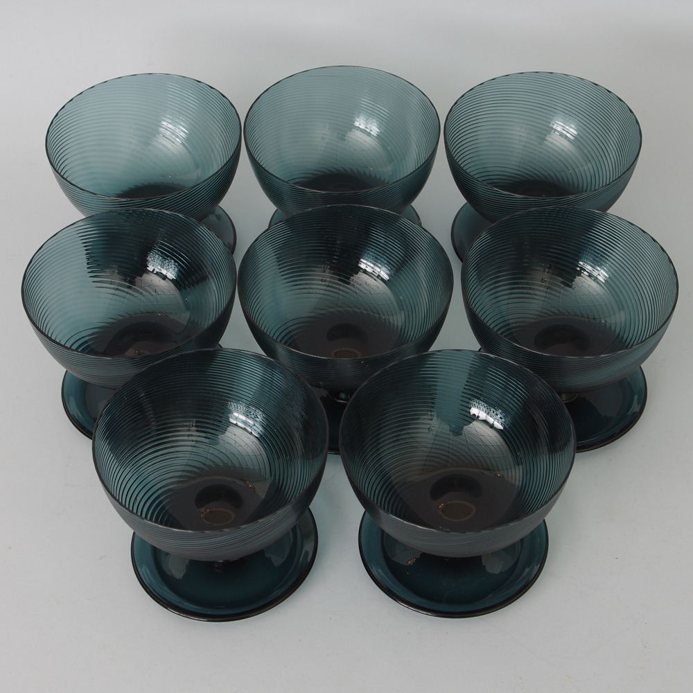 206333. DESSERTSCHALEN, 8 Stück, blaues Glas.