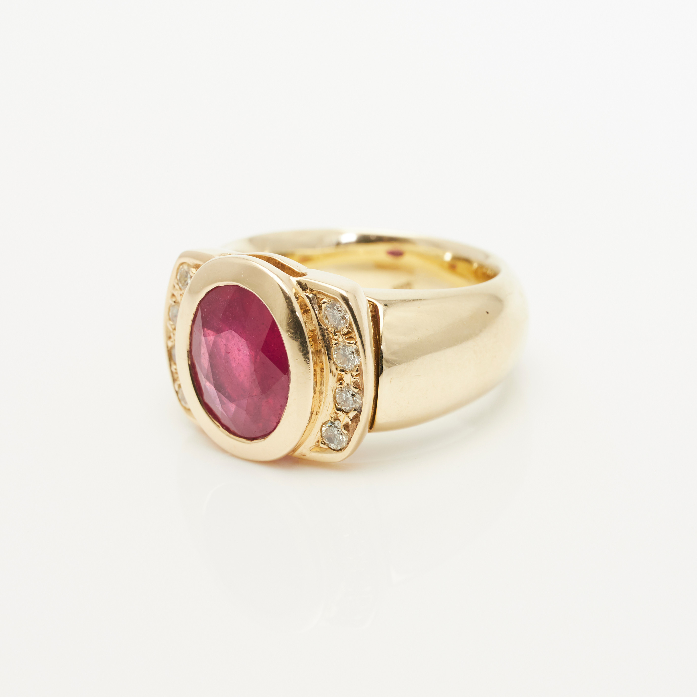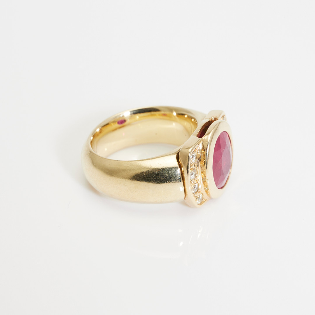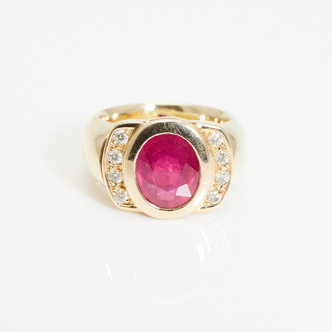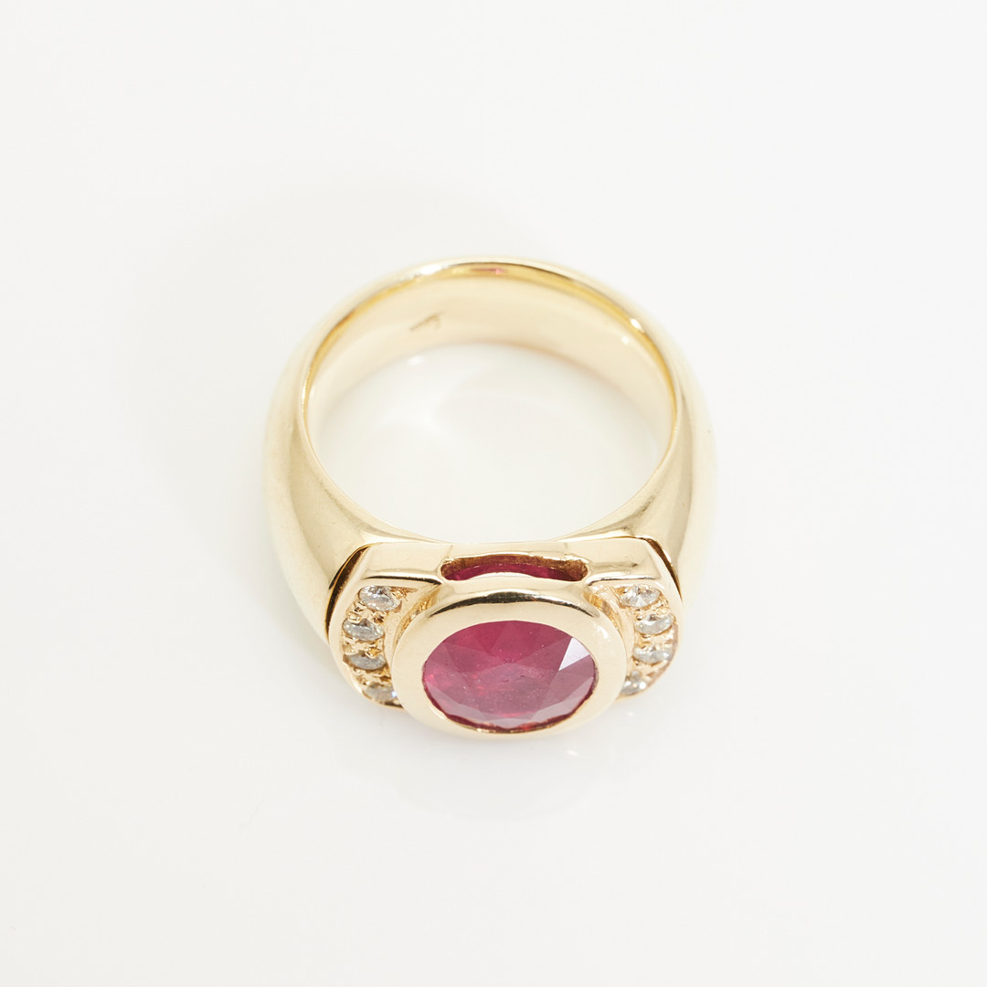 2066920. Ring, 585er Gelbgold, Rubin, Brillanten.