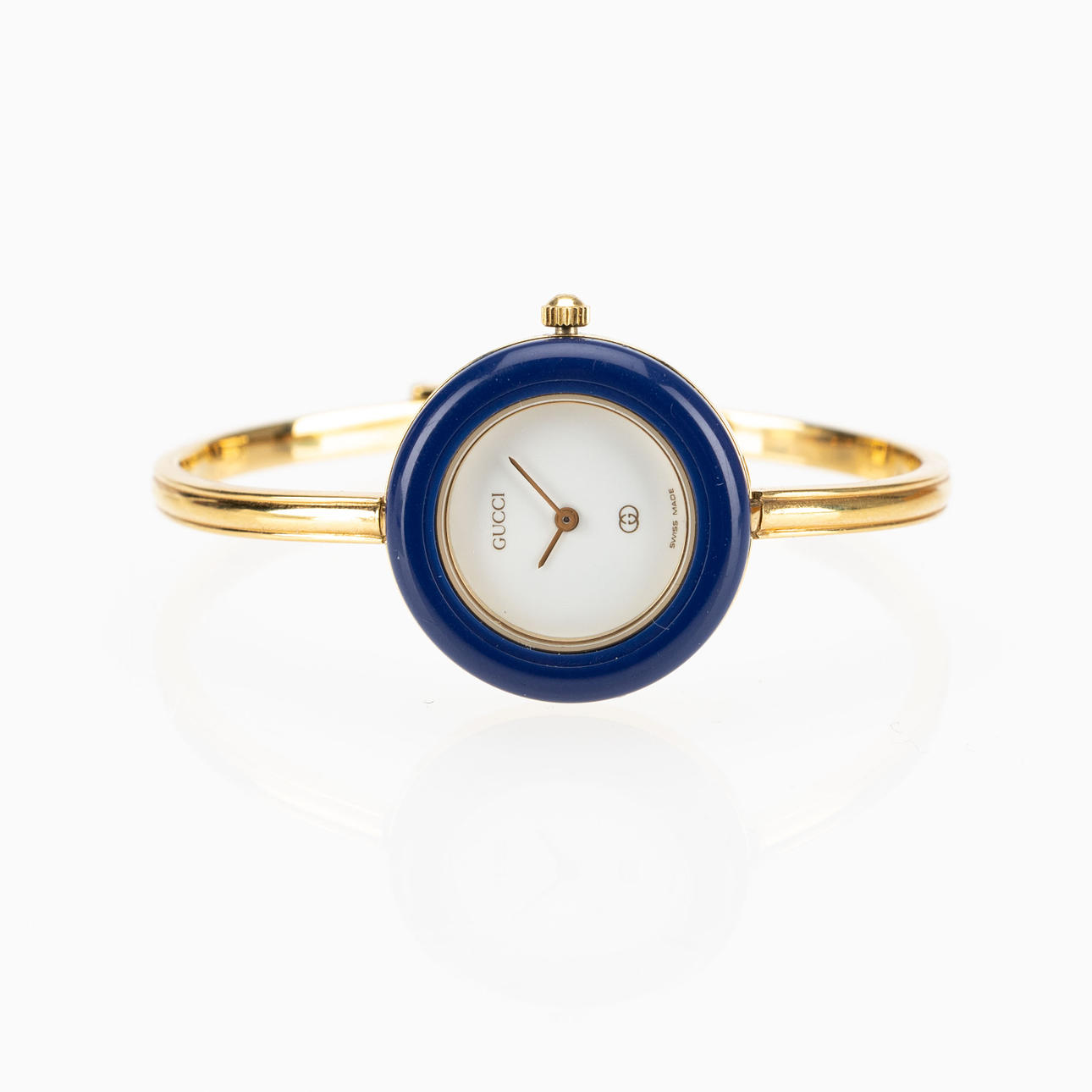 Vergoldet, Quarz, Plexiglas, austauschbare Gehäuseringe in verschiedenen Farben, Originalschatulle, Referenz Nr. 1100-L, Seriennummer 026887.