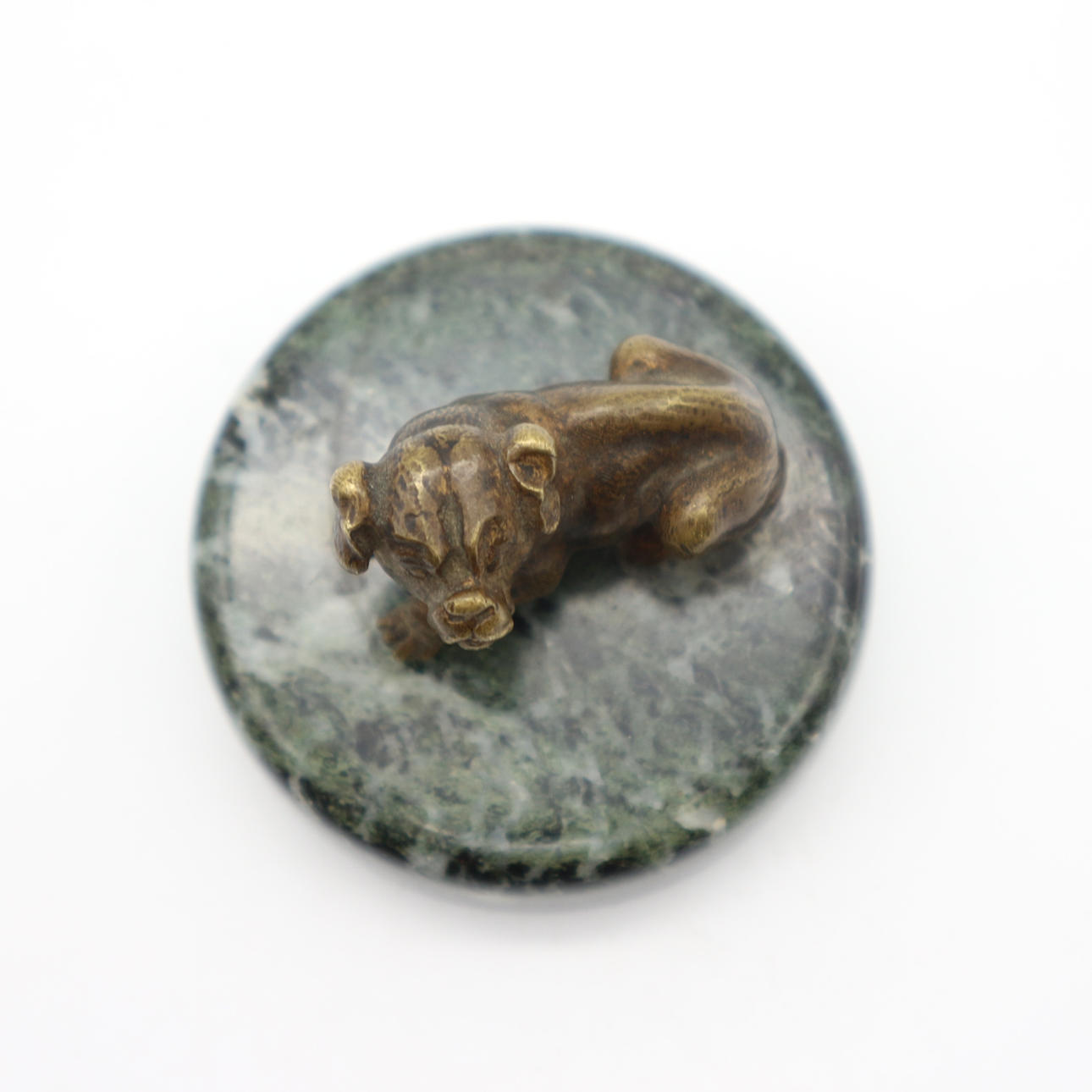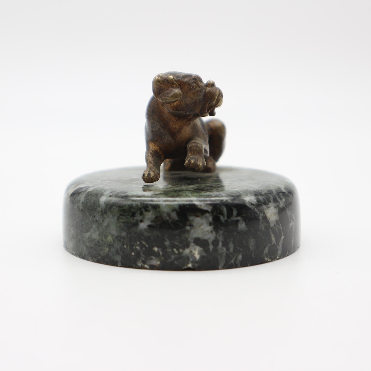 Antiker Bronzehund auf Mamorsockel