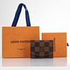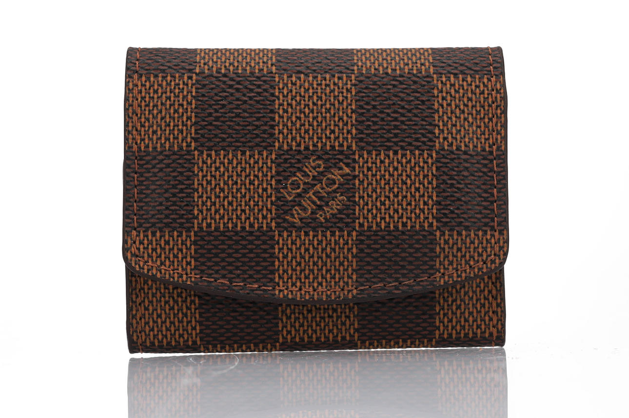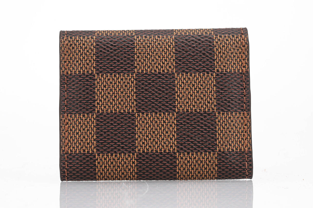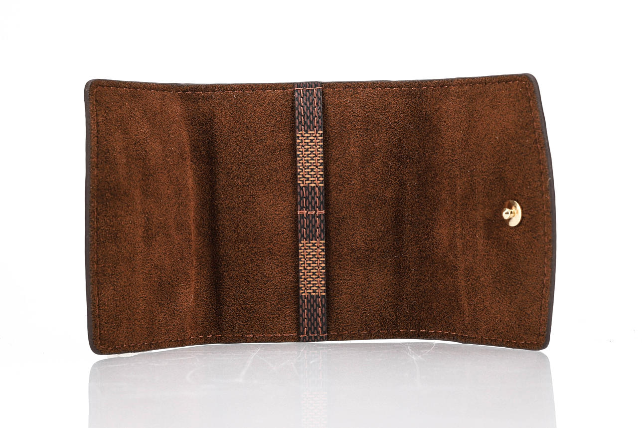 Damier Ebene außen, braunes Wildleder innen, Druckknopf, 8x6,5 cm. Ausziehbare Box und Tasche inklusive.