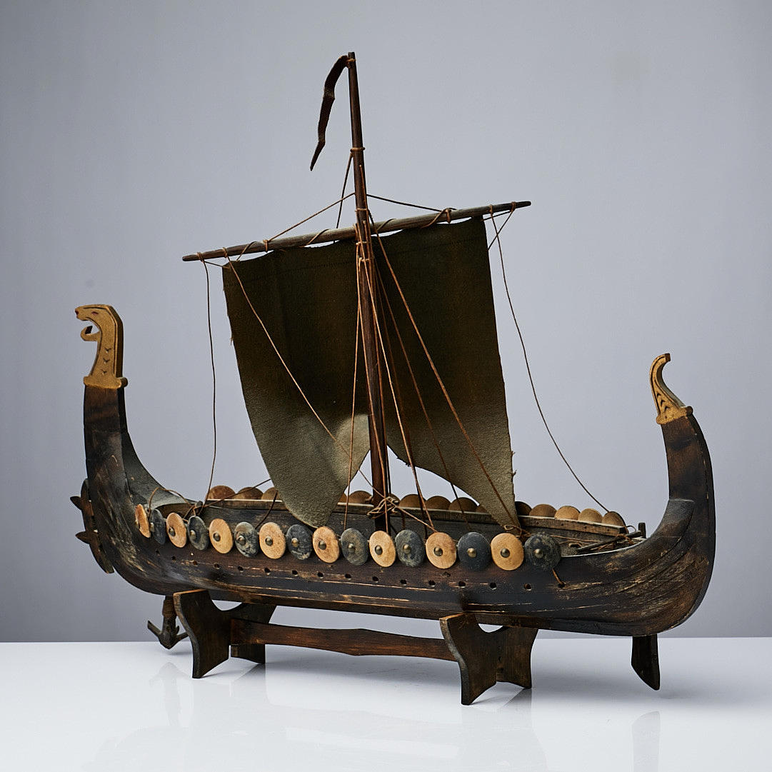 2072738. SCHIFFSMODELL, erste Hälfte des 20. Jahrhunderts, Darstellung sogenannter Wikingerschiffe. Gokstad-Schiff.