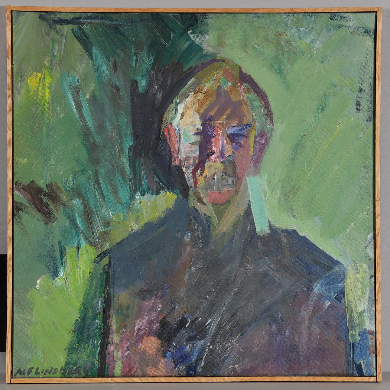 Selbstbildnis, Öl auf Leinwand, signiert. Inklusive Rahmen 48x48 cm.