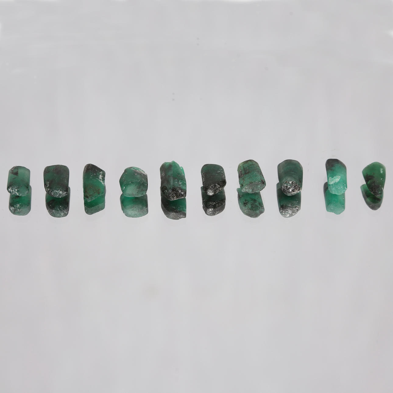 2077608. SMARAGD, roh, 10 Stk., ca. 48,70 ct.