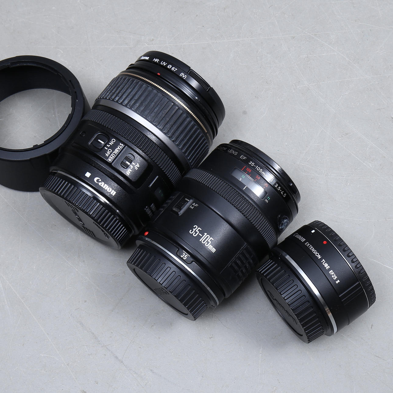 EF 35-105 mm mit ET-62 Gegenlichtblende.