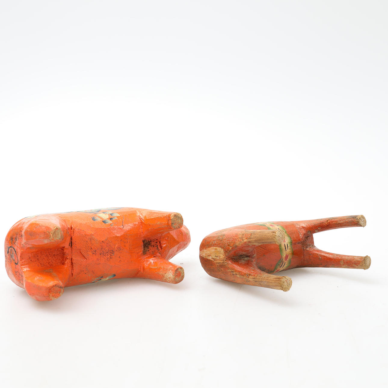 Dalaschwein in Form eines Sparschweins, lackiertes Holz Länge 14,5 cm.