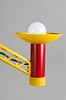Hartplastik und Metall in rot, gelb und blau lackiert. 3-flammig. H. 58 cm, Ø 45 cm.