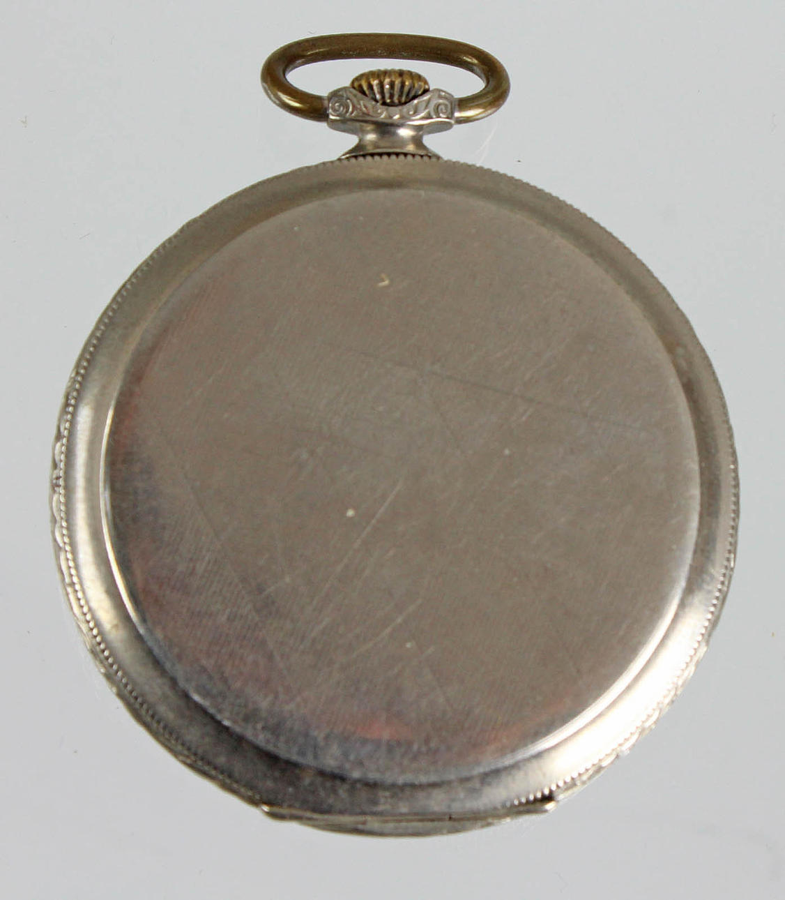 mit Rautengravur. Perl- und Floralrand verziertes Nickelgehäuse, hellgoldenes Zifferblatt mit Streifendekor aufgelgten goldfarbenen arabischen Zahlen und Zeiger, bez. *Hera* Biel Schweiz, von H. Gasser & Cie in 1926 übernommen, kleine Sekunde bei 6 Uhr, Metall Staubdeckel, Handaufzugswerk Fabriques d'Horlogerie Revue-Thommen SA Waldenbourg, Schweiz läuft an, Ø ca. 49 mm.