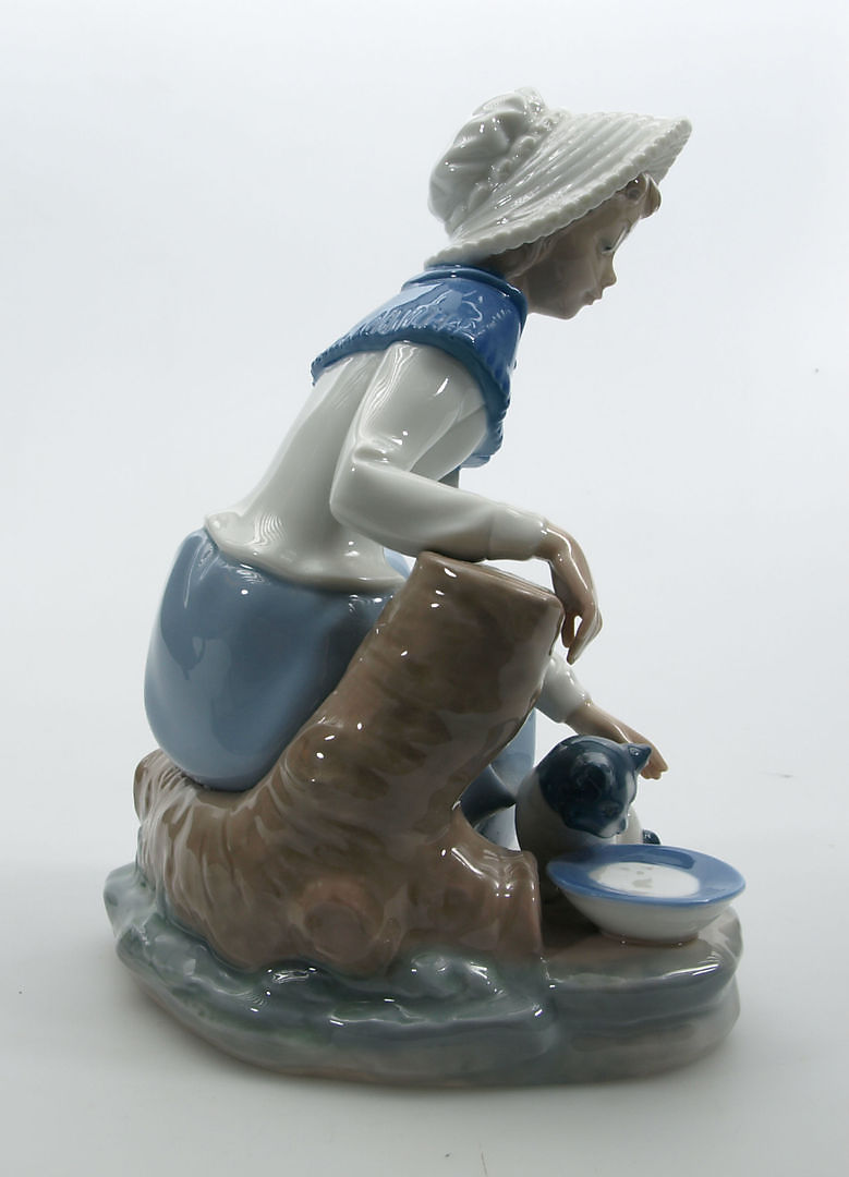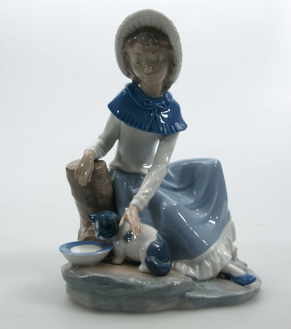 209680. FIGUR, Porzellan, Mädchen mit Katze, Nao.