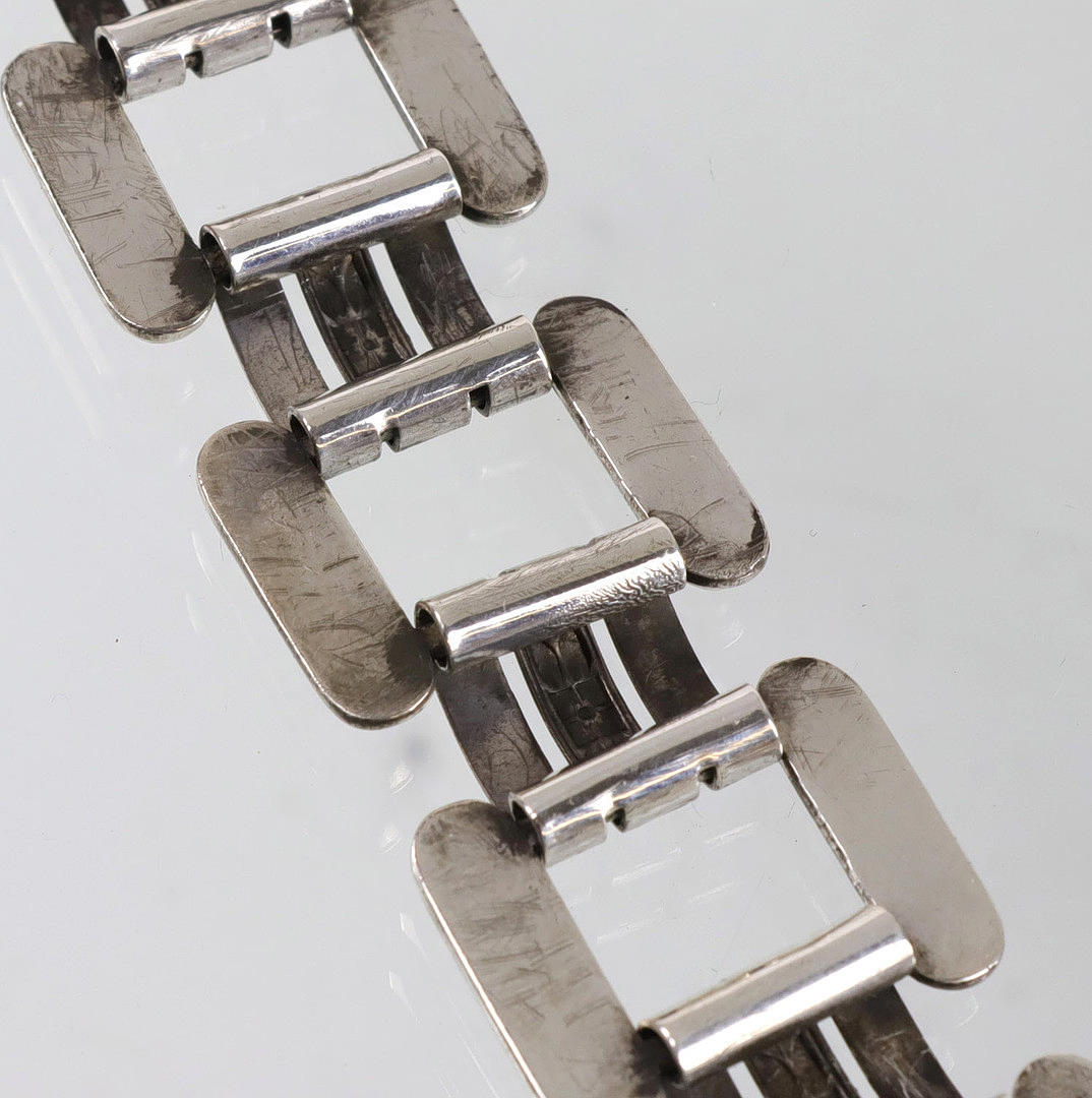 Das Armband ist in Silber 835 gearbeitet und so auch punziert. Signet Karl Hohmann, Pforzheimer Hersteller, aktiv zwischen den 1920er und den 1940er Jahren.