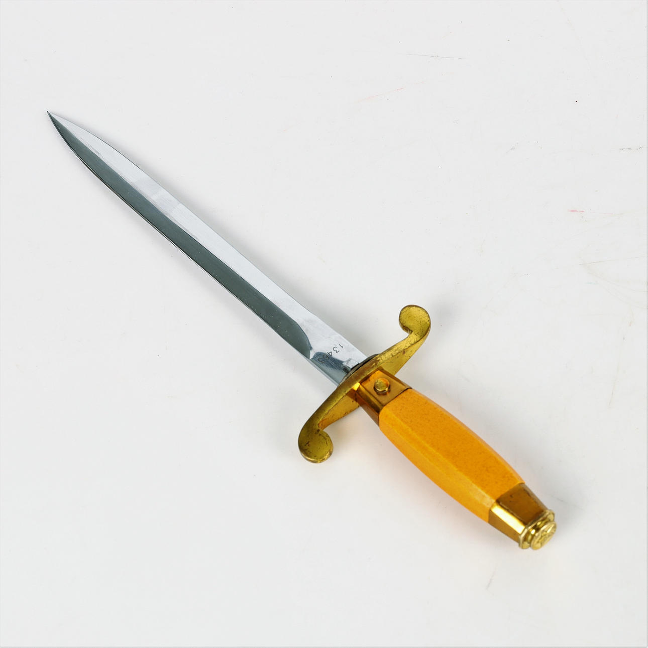 Seriennummer 13463 Gesamtlänge (inkl. Scheide) ca. 33,5 cm Klingenlänge ca. 21,5 cm.