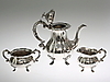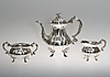 Kaffeekanne, Zuckerdose, Milchkännchen, Gewicht zusammen 1239 Gramm.