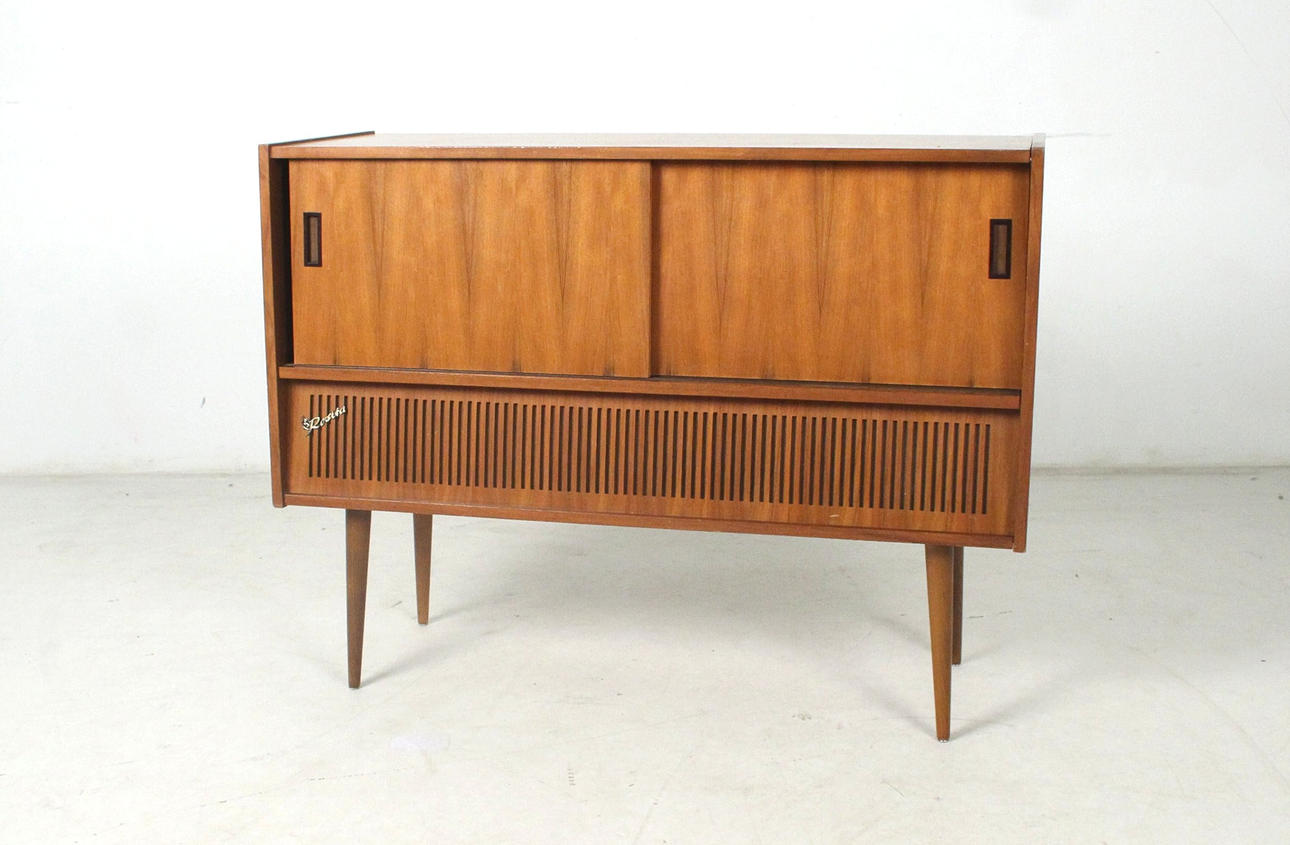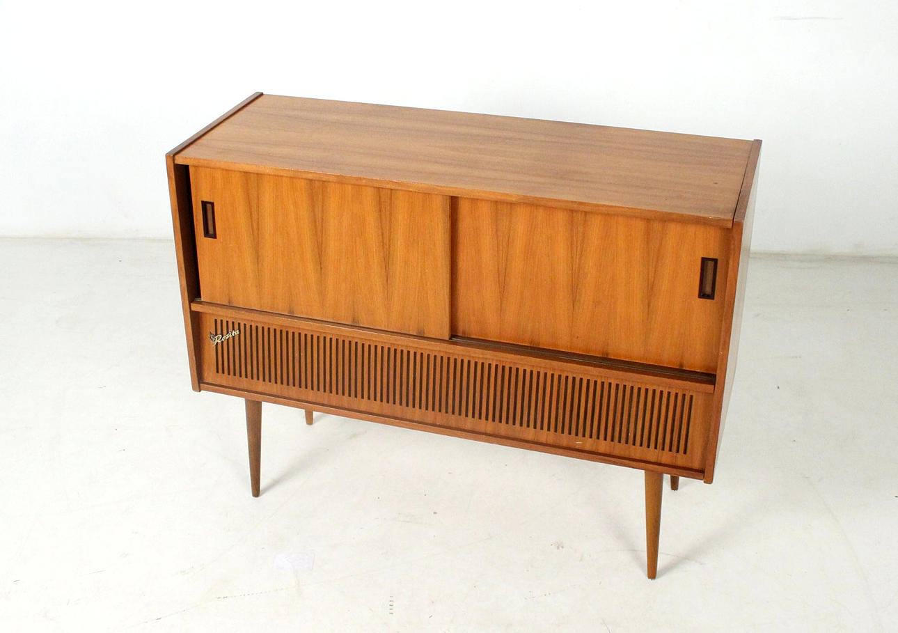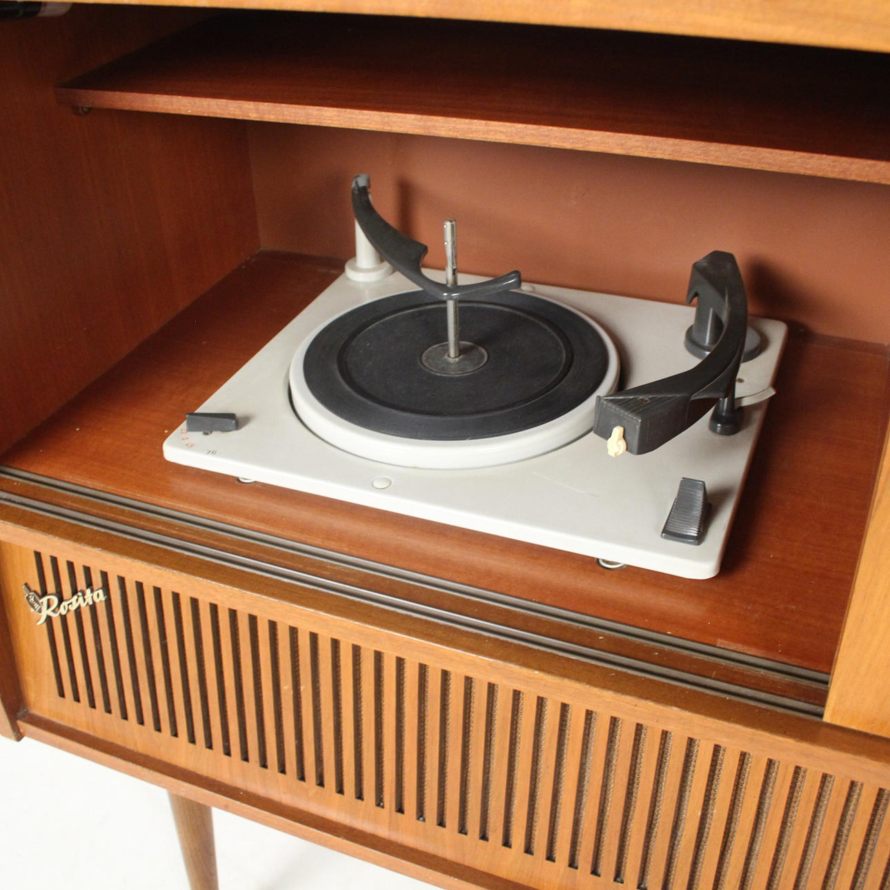 Formschöne Musikbox mit Plattenspieler und Radio, Bedienungsanleitung & Zubehör der Firma Rosita.