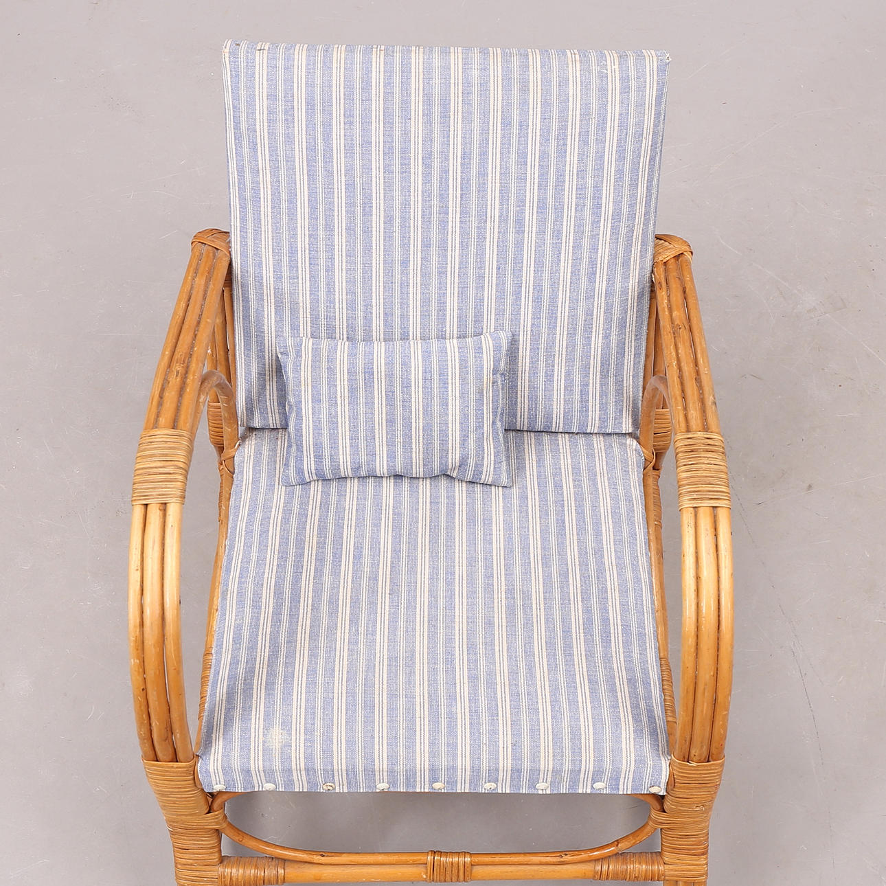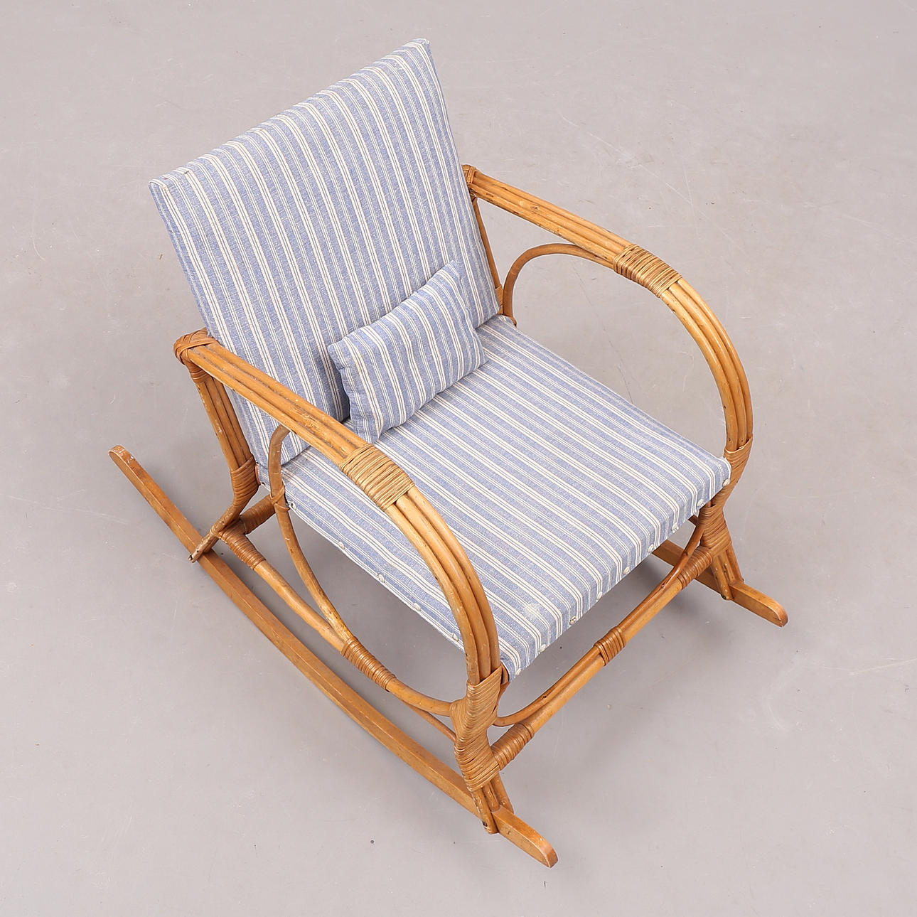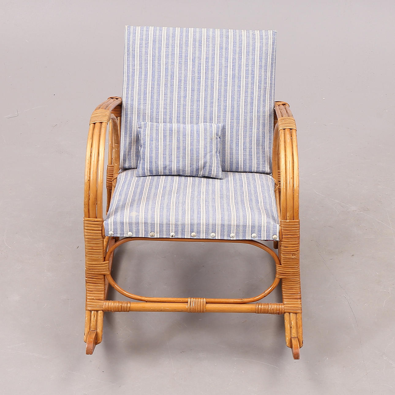2114998. KINDERSTUHL, Rattan/Stoff, Mitte 20. Jahrhundert.