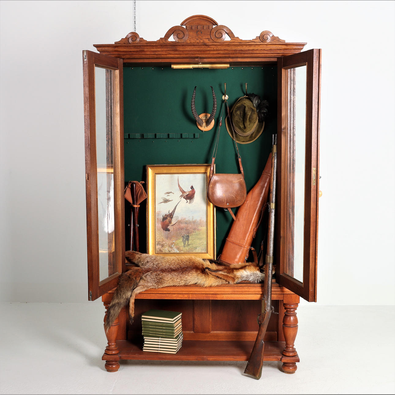 2118165. WAFFENSCHRANK, Eiche, Glastüren, erste Hälfte des 20. Jahrhunderts.
