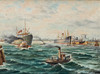 LOTHAR SCHLÜTER (GEB. 1928). Dampfschiffe im Hafen.