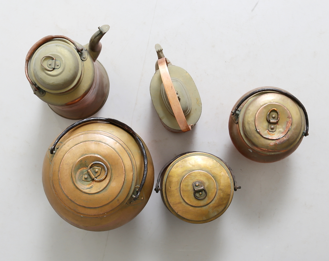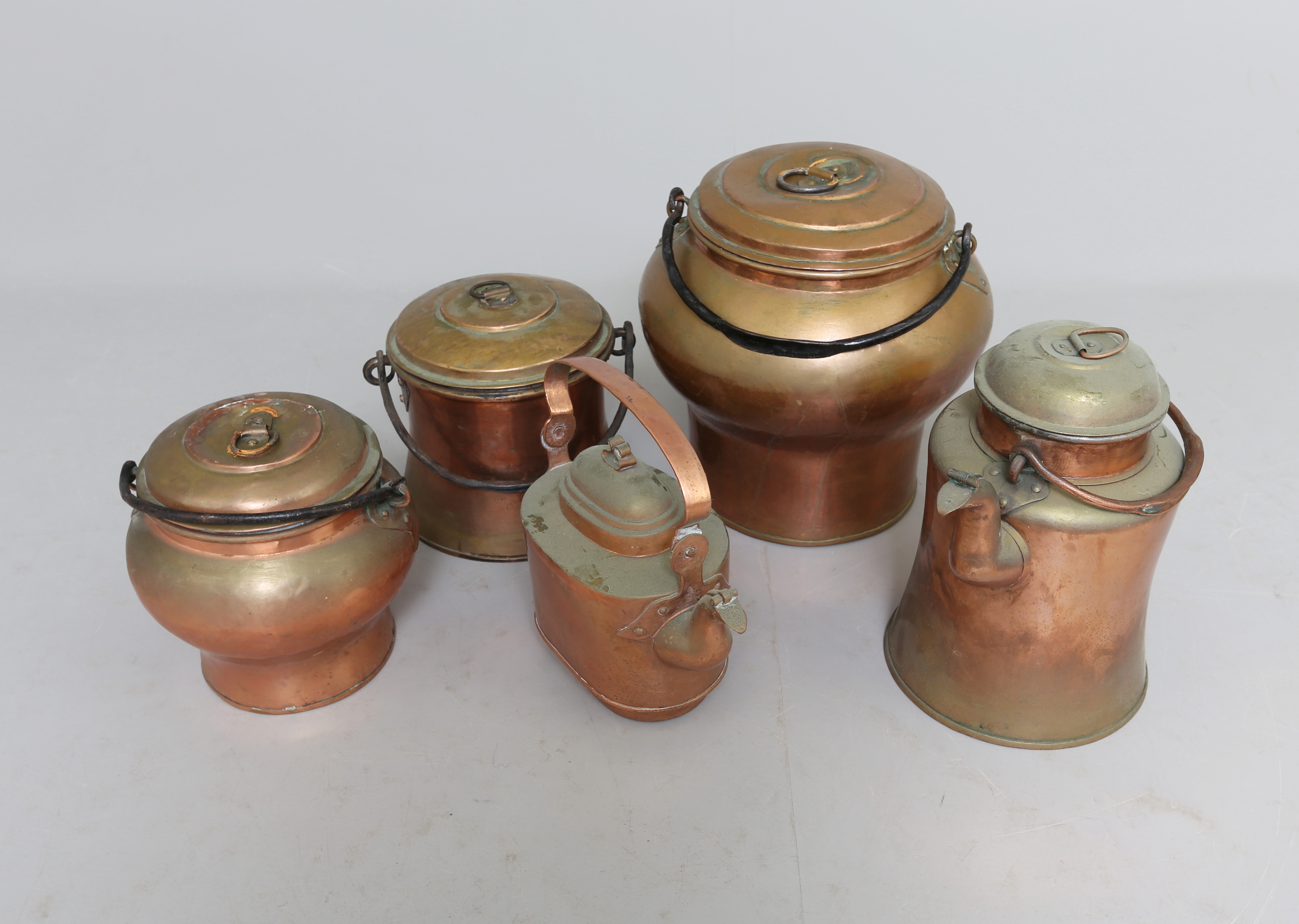 211969. BULK POTS UND KAFFEETÖPFE, Kupfer, 5 Stück, 18 / 1900.