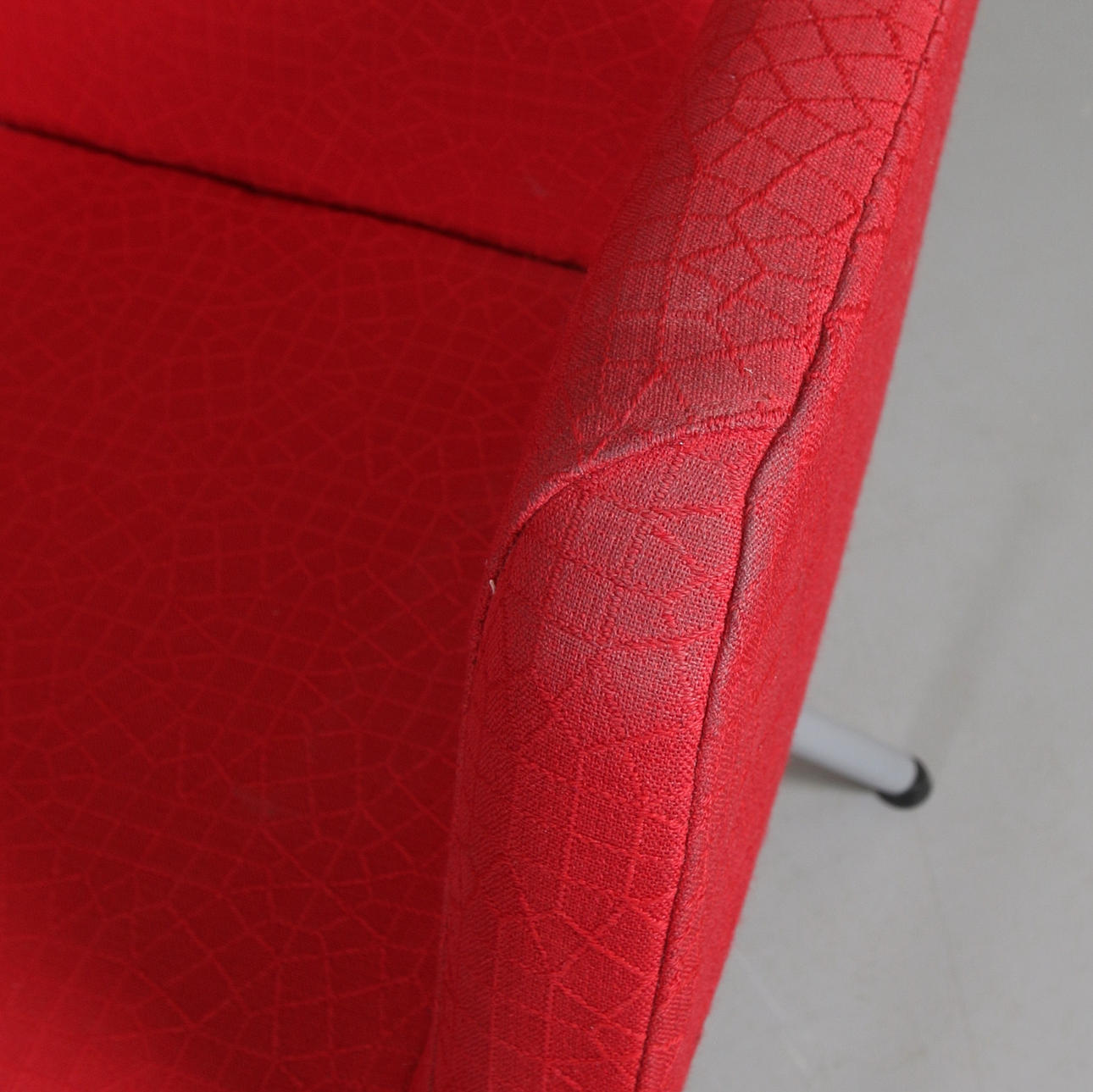 Verschleiß, Flecken, Markierungen sind vorhanden. An der Naht eines Stuhl ist ein Riss.