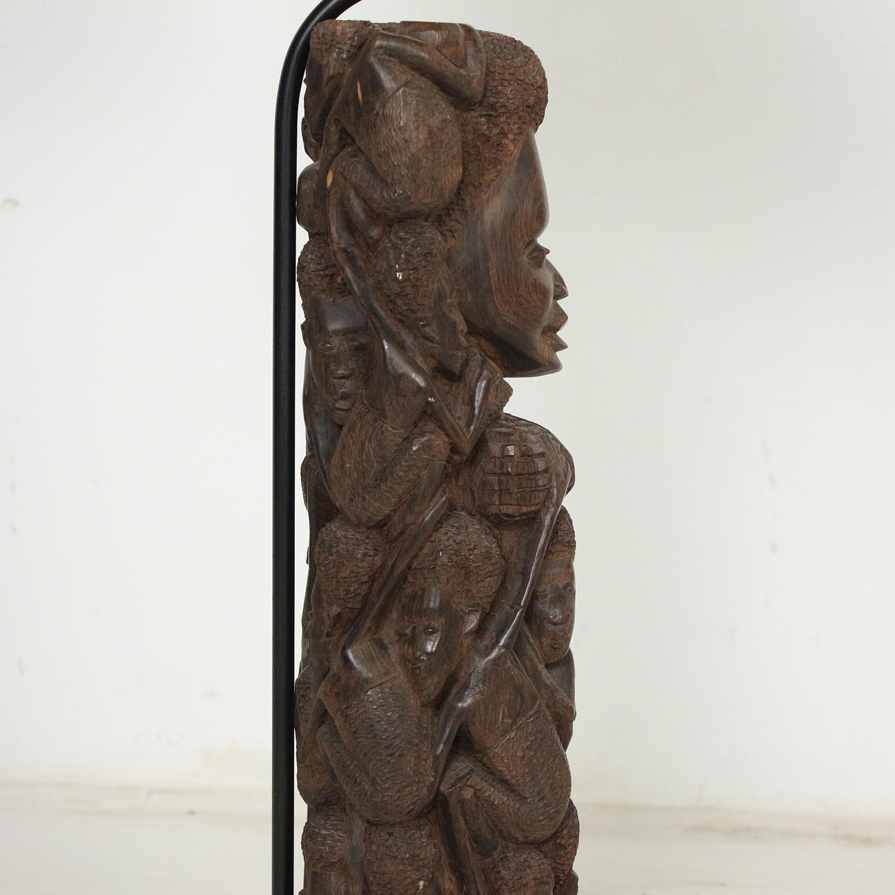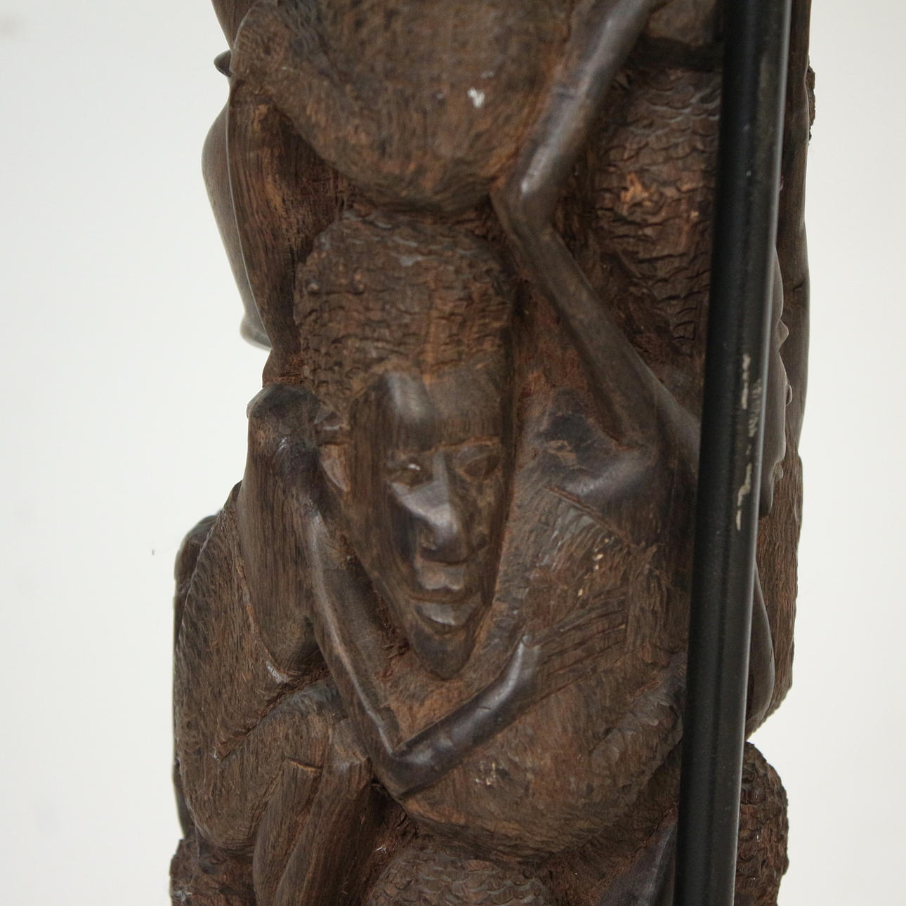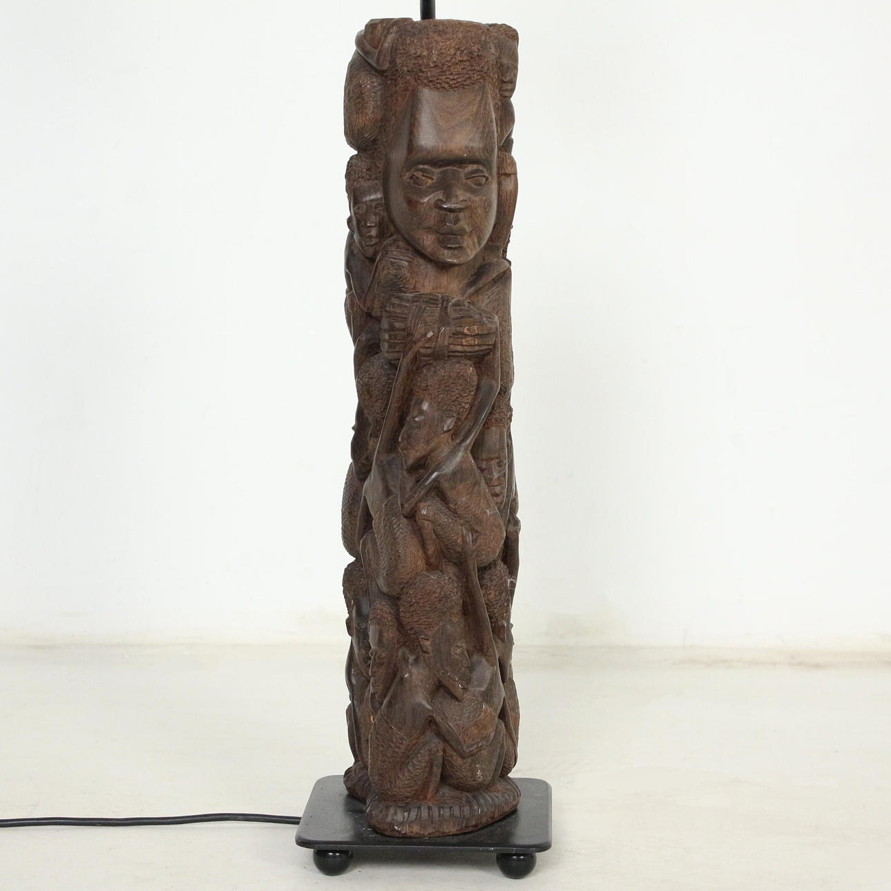 Lampe/ Tischlampe, Lampenfuß aus Holz geschnitzt, Afrika, Maße ca.: H. 85 cm, Ø 36 cm.