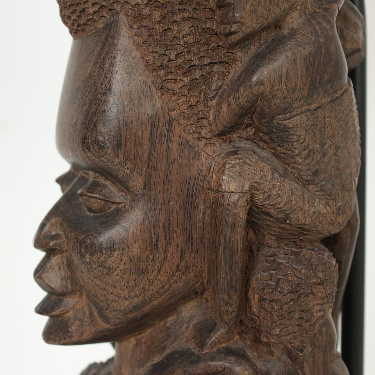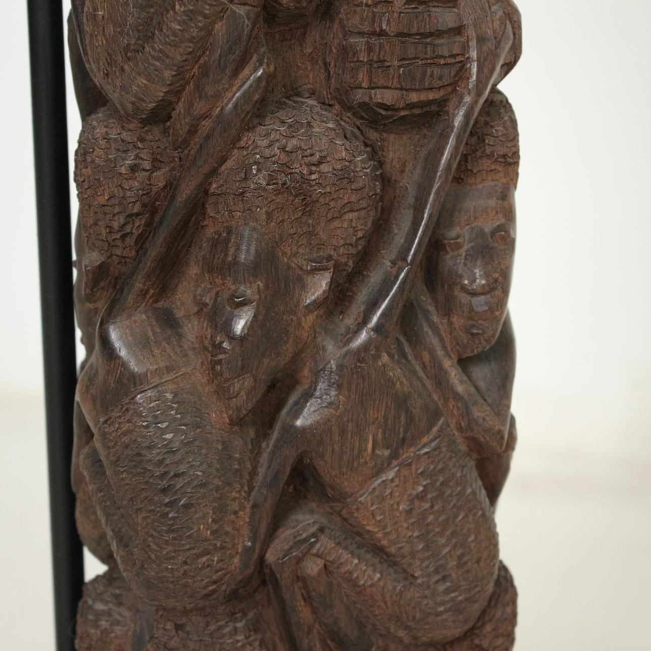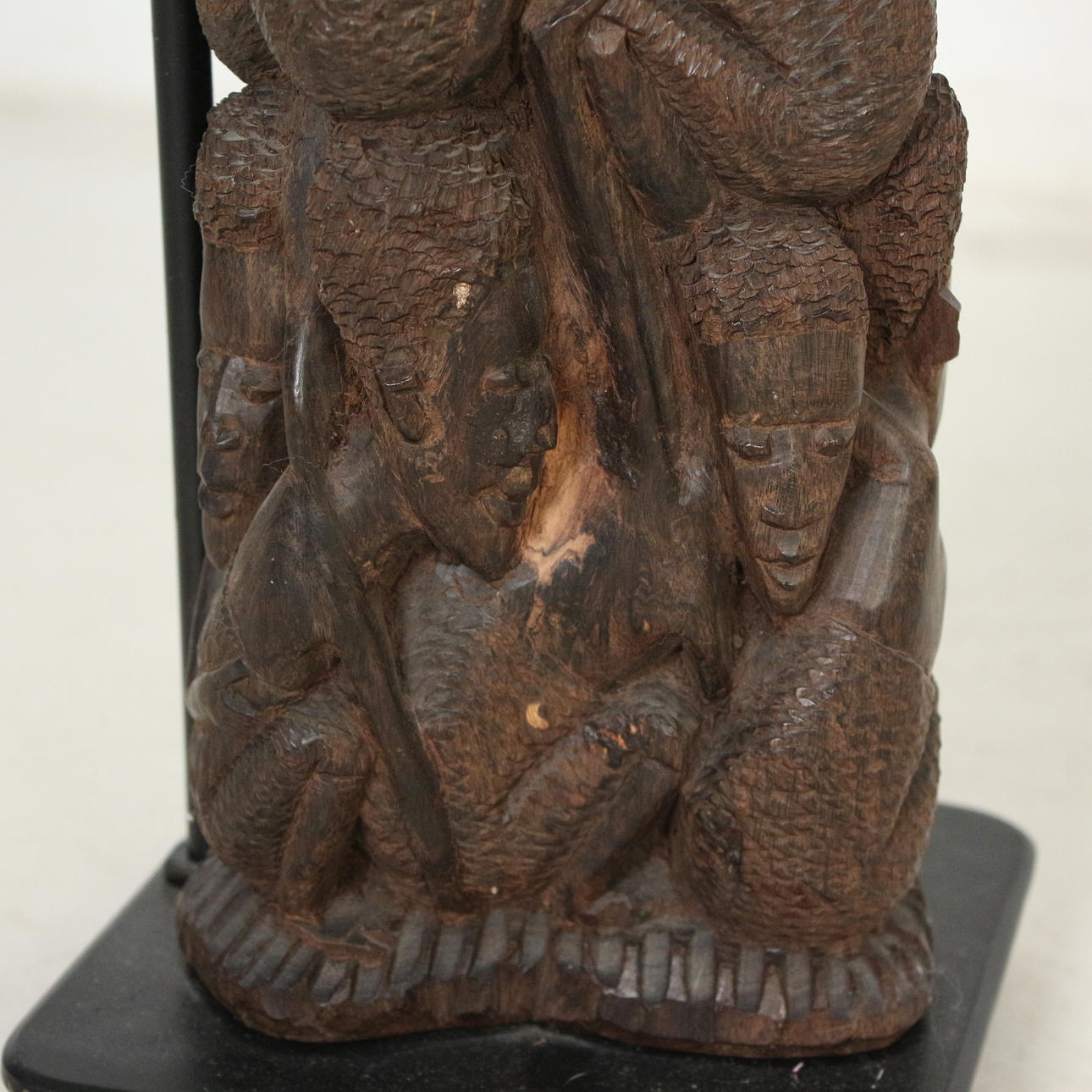 Lampe/ Tischlampe, Lampenfuß aus Holz geschnitzt, Afrika, Maße ca.: H. 85 cm, Ø 36 cm.