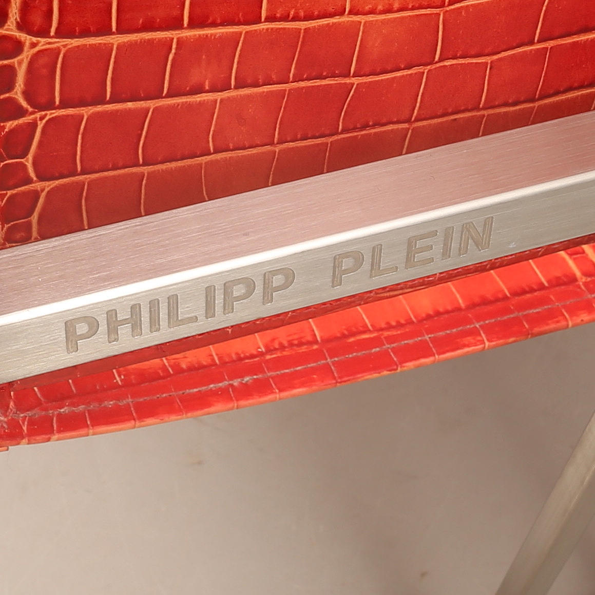 2124200. Stuhl, Philipp Plein, Metall und Leder.