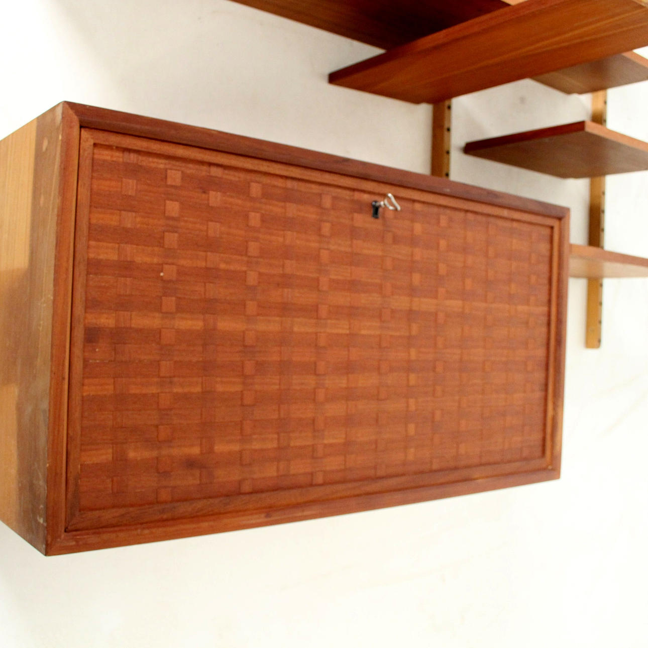 Der dänische Designer und Hersteller Poul Cadovius wurde 1911 in Frederiksberg geboren. Ursprünglich in Sattlerei und Polsterei ausgebildet, fing er an, sich für Industriedesign zu interessieren und gründete 1945 seine eigene Möbelfabrik mit dem Namen Royal Systems. Kurz darauf hatte Cadovius die revolutionäre Idee, ein schwebendes, modulares Regalsystem zu entwerfen, das Platz maximieren und ein Ende in der Eintönigkeit von Regalsystemen bedeuten sollte.