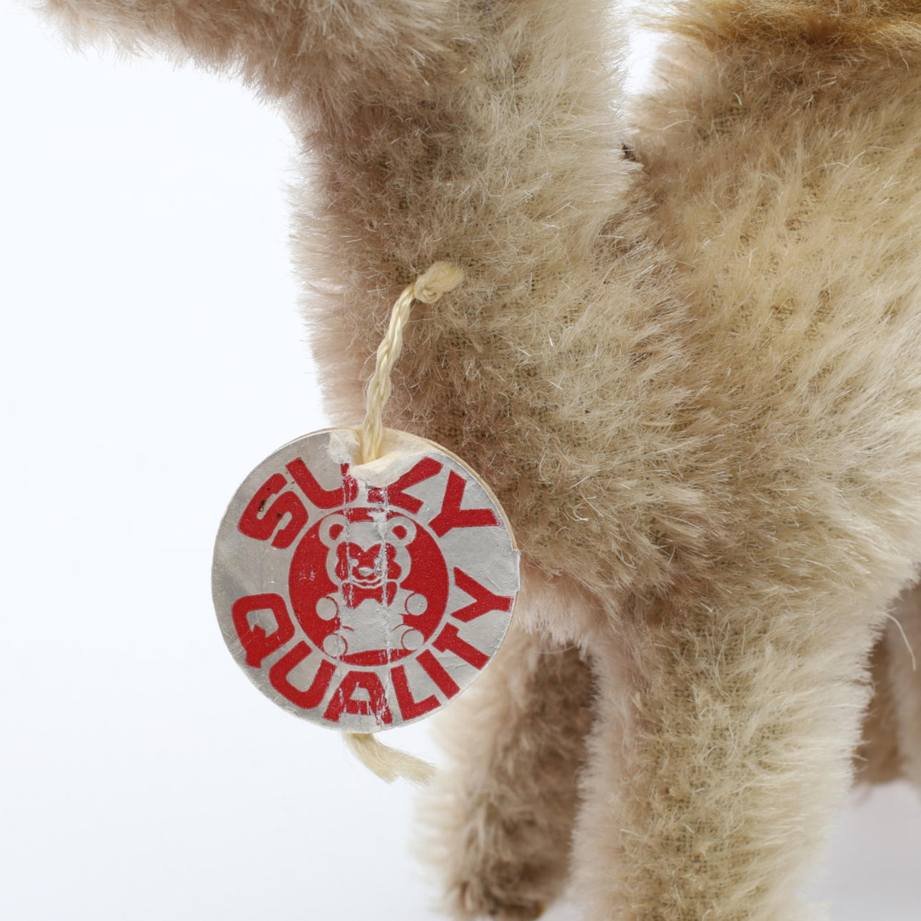 SPIELZEUG, 2 Teile, in Form einer Eule mit Steiff-Marke und eines Dromedars mit Suzy-Qualität.