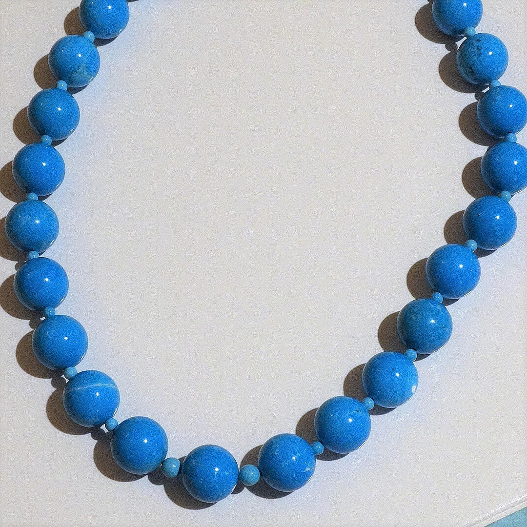 Hellblauer geschliffener Achat, Kette in unterschiedlich großen Kugeln. Etwa 60 cm lang, 1,2 - 1,6 cm Durchmesser.
