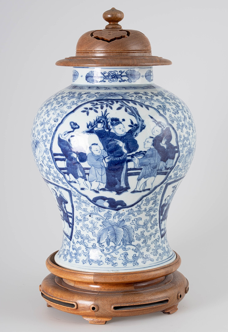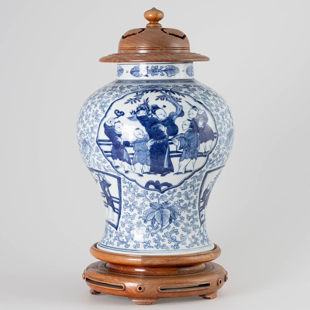 2130621. Chinesische Blau-weiß-Deckelvase.