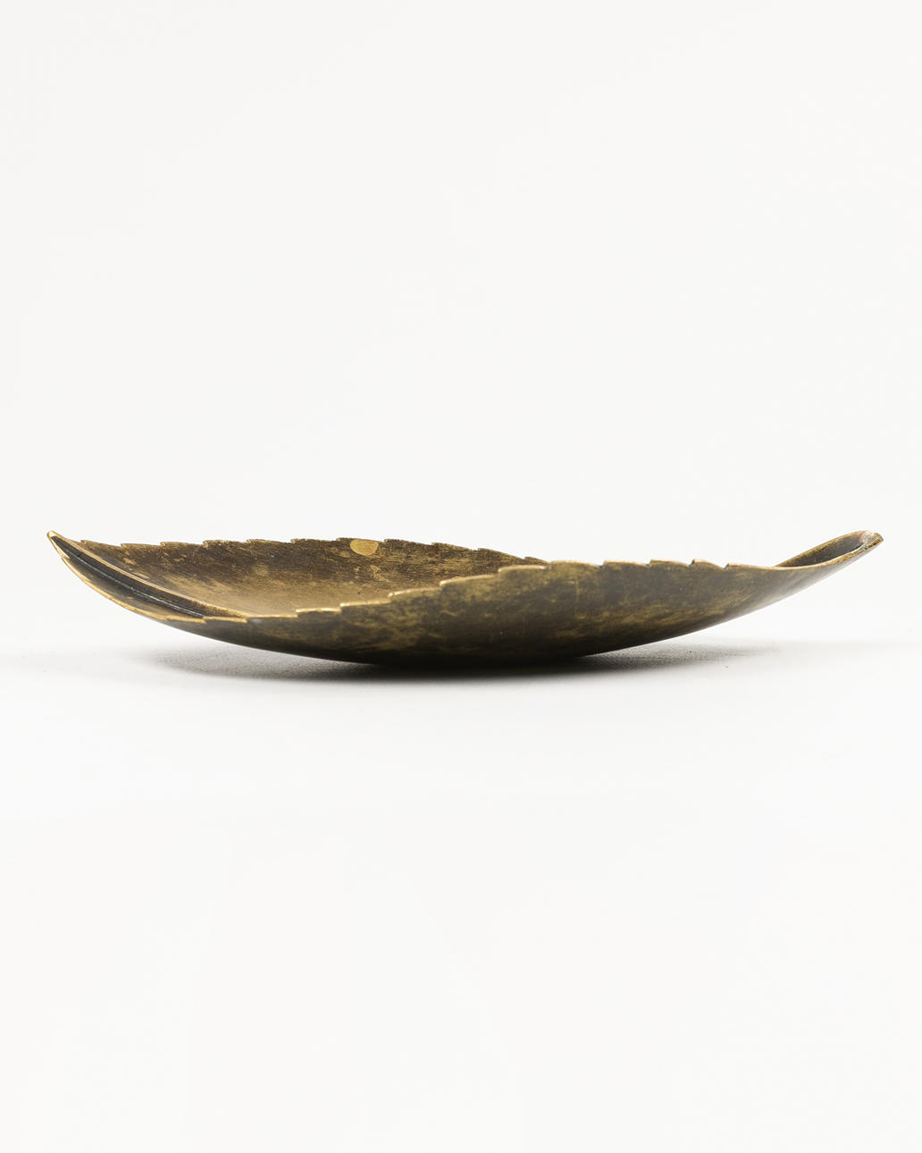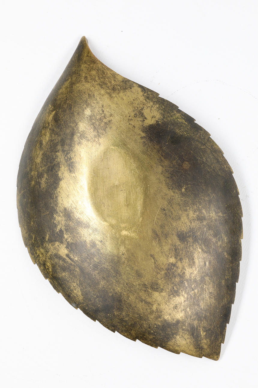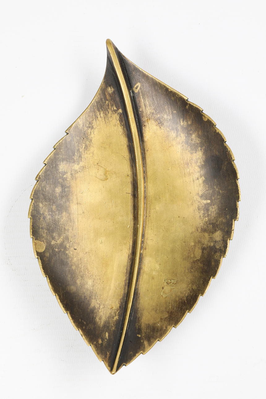 Blatt. Aschenbecher/ Schale. Wohl: Carl Auböck. Messing, geschwärzt und teilweise poliert. 22 x 13 x 3 cm.