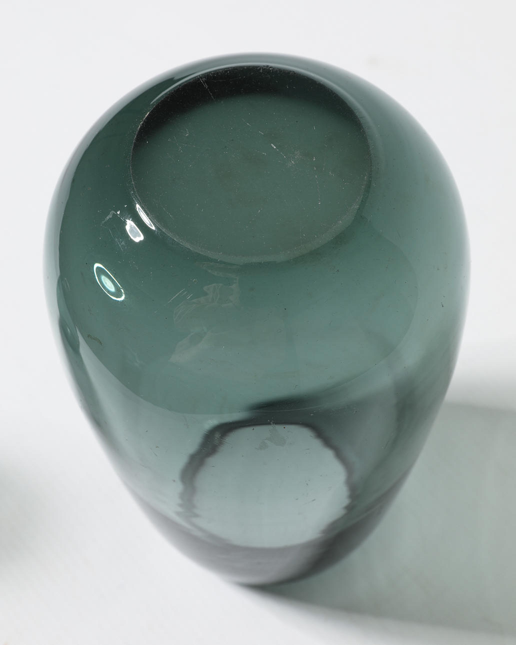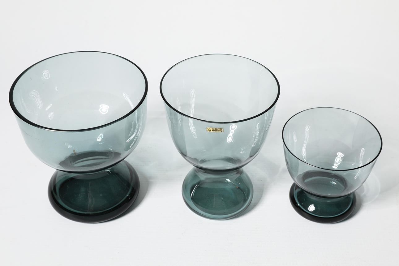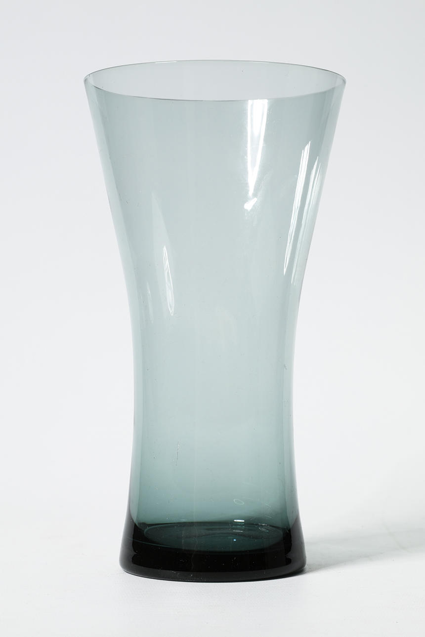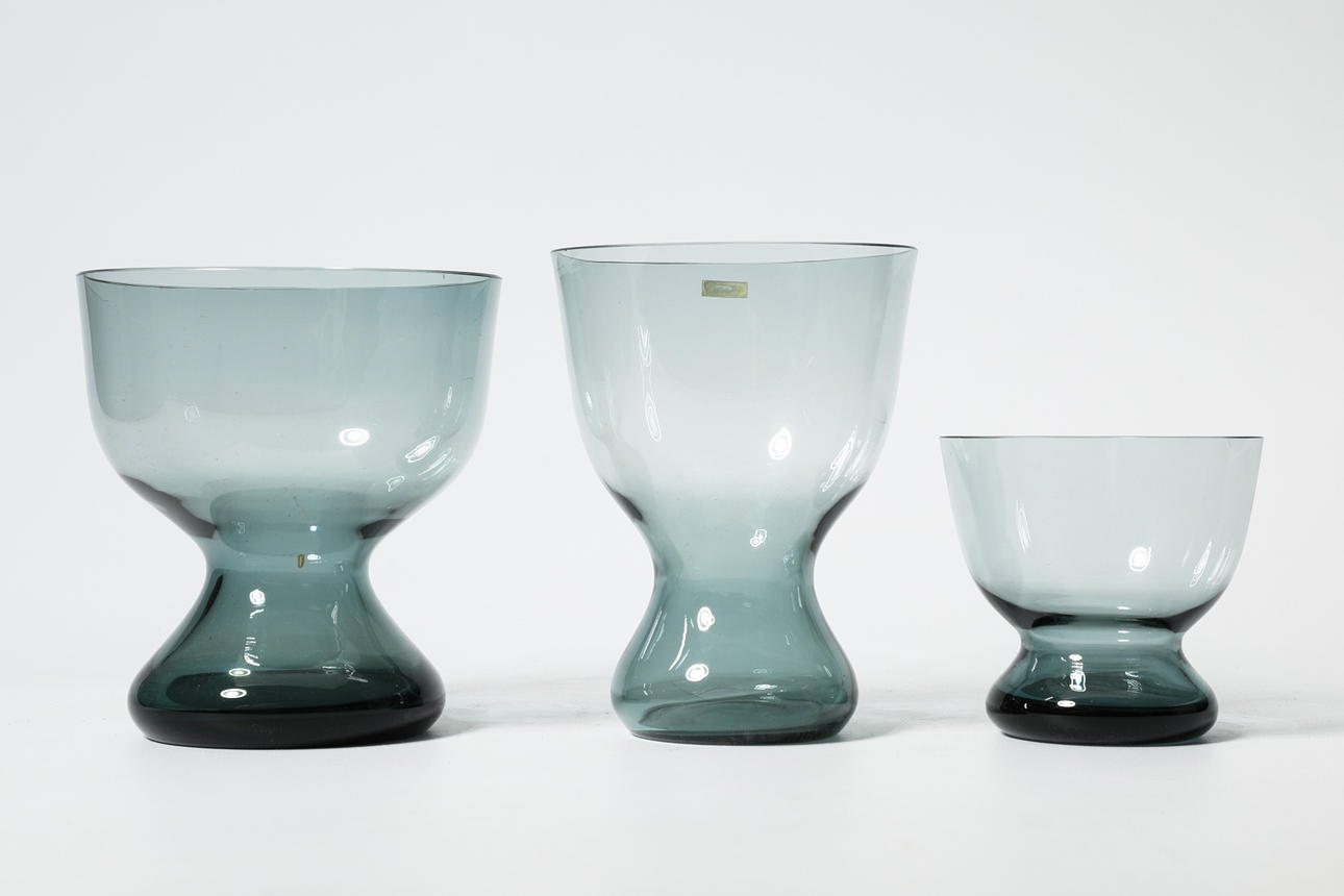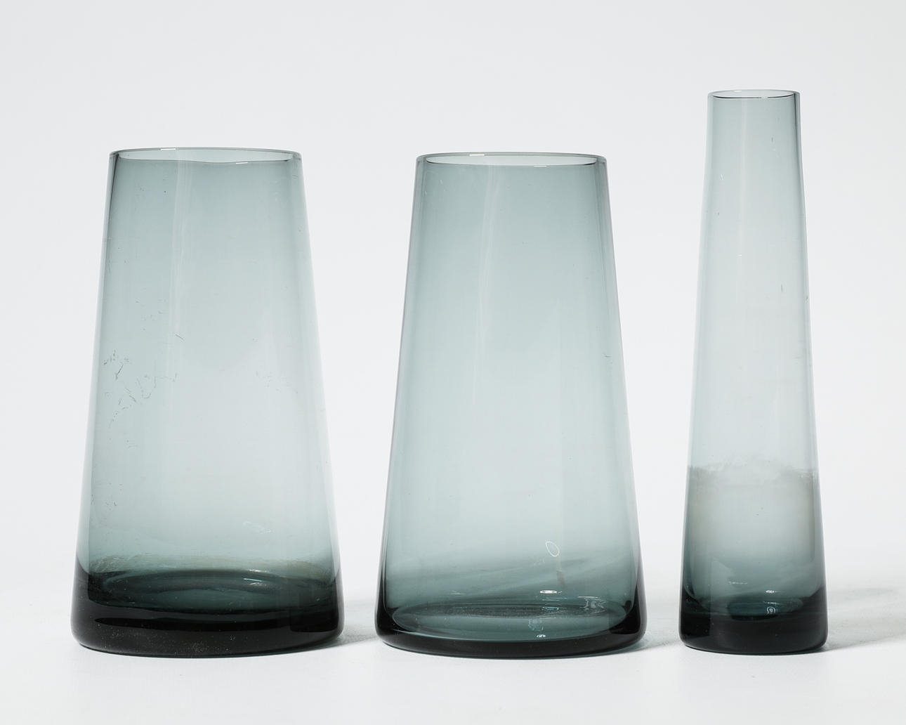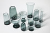 11 Vasen. Wilhelm Wagenfeld für WMF. Glas, grau-blau-grün. H. ca. 12-25 cm. Teilweise mit Firmenetikett bezeichnet.