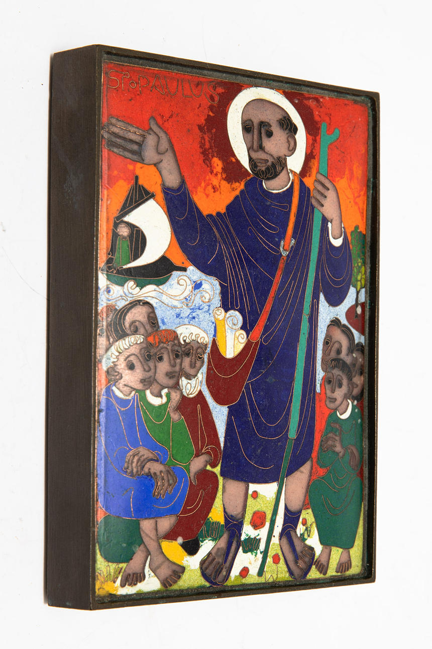 St. Paulus. Emaille Bild. 18,5 x 13 x 3,5 cm.